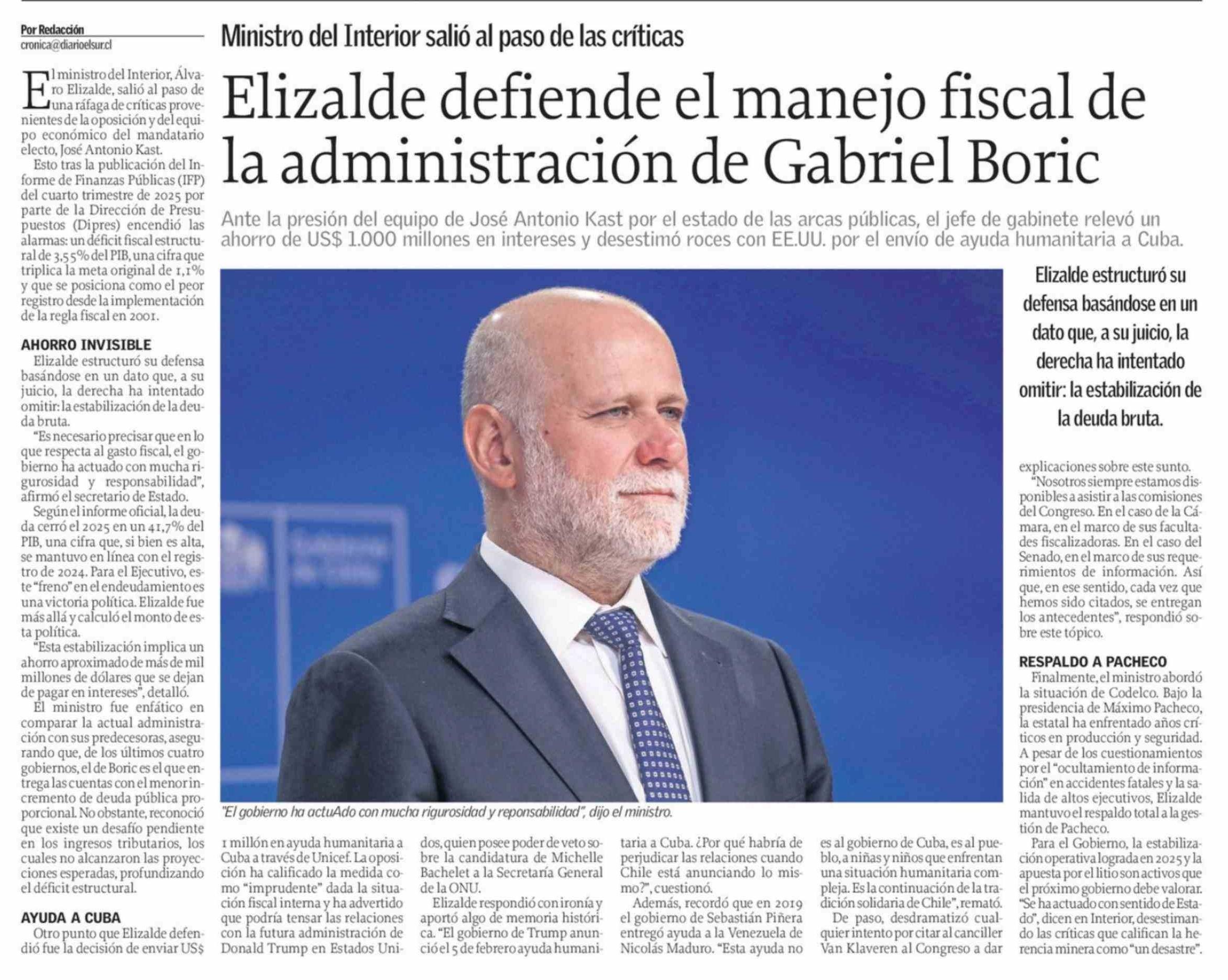 Elizalde defiende el manejo fiscal de la administración de Gabriel Boric
