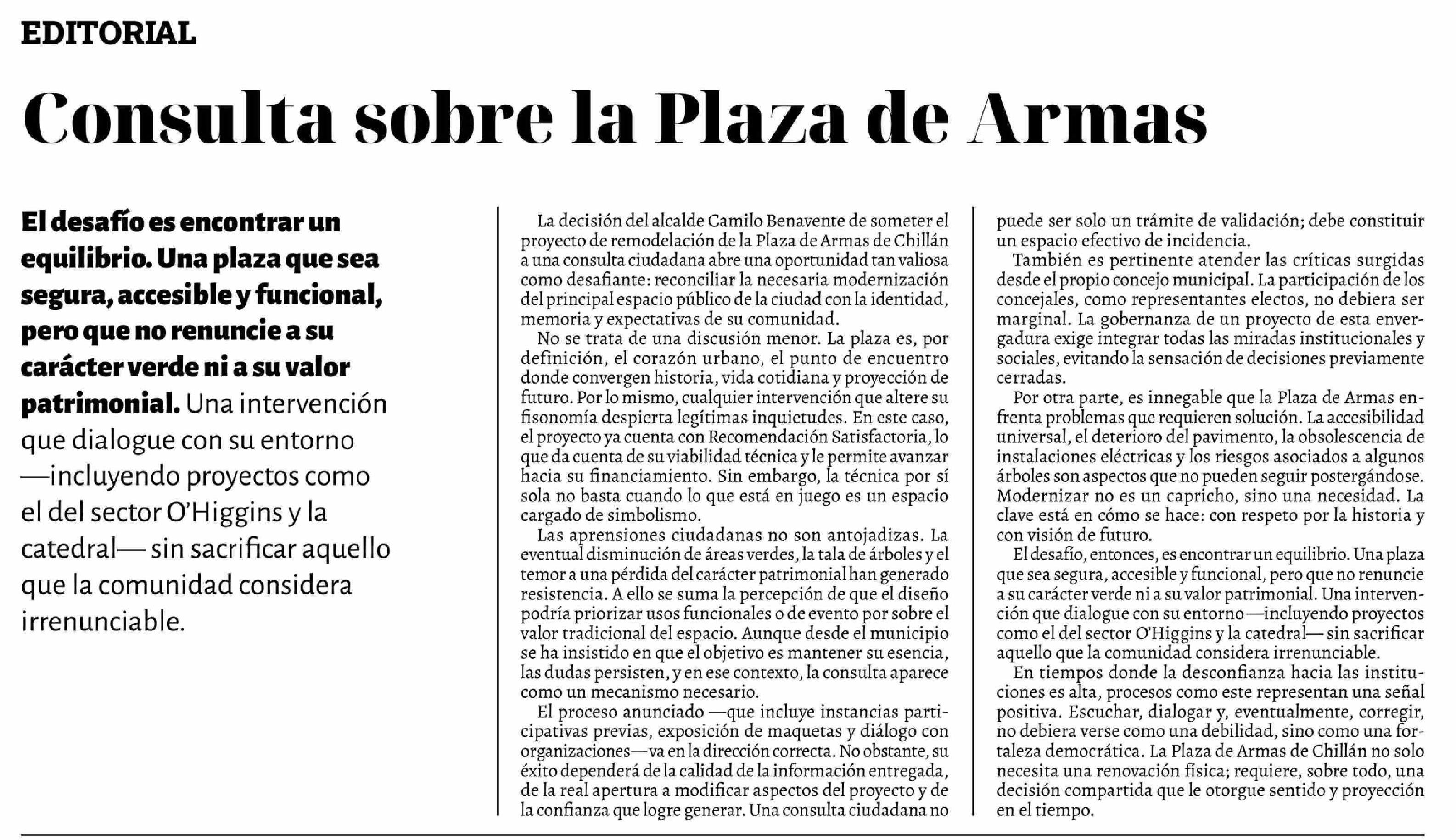 Editorial: Consulta sobre la Plaza de Armas