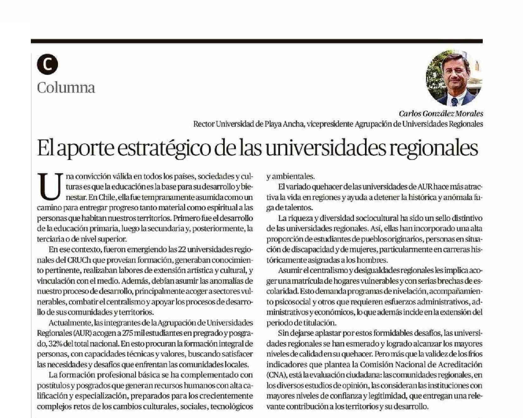 COLUMNAS DE OPINIÓN: El aporte estratégico de las universidades regionales