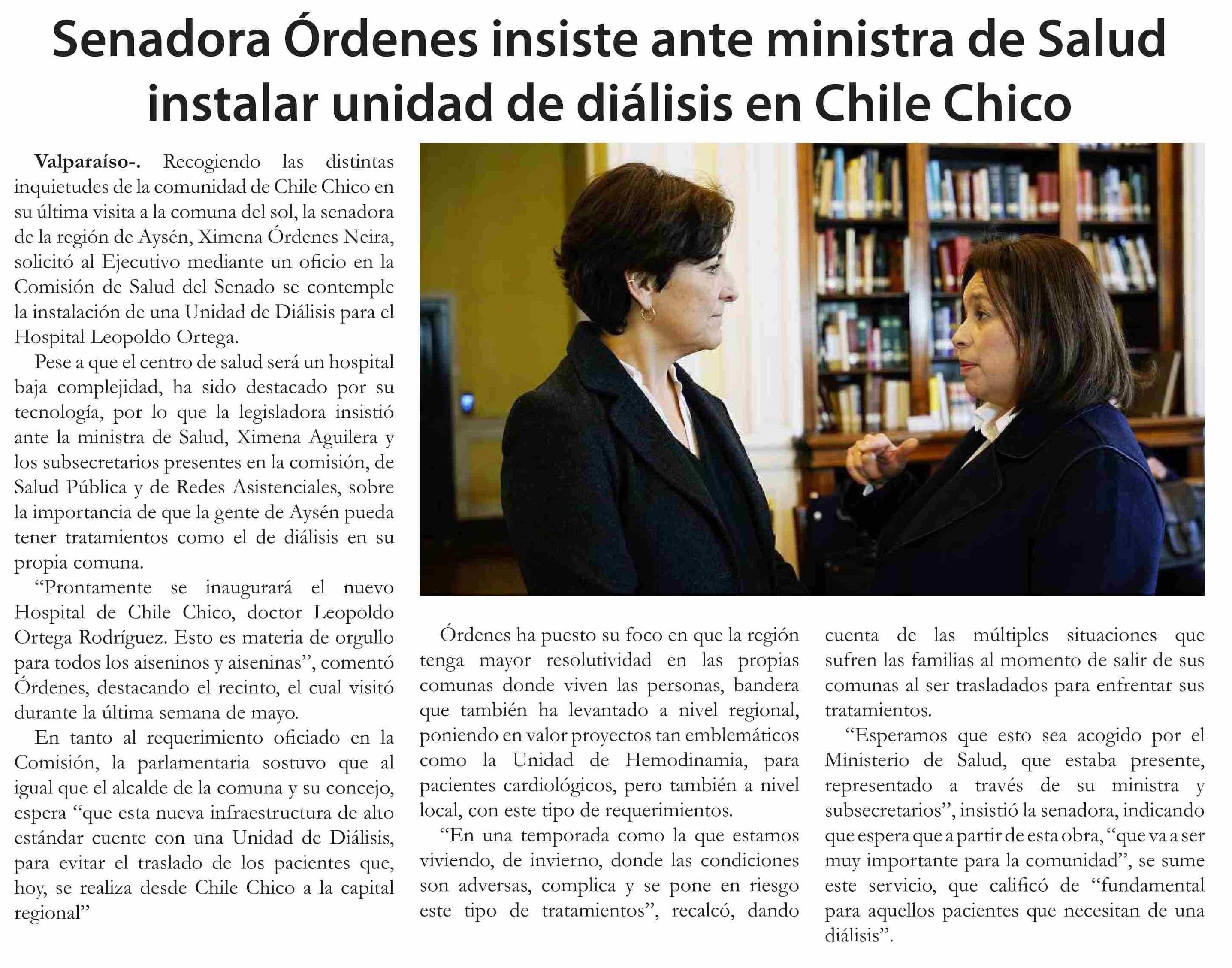Senadora Órdenes insiste ante ministra de Salud instalar unidad de diálisis en Chile Chico