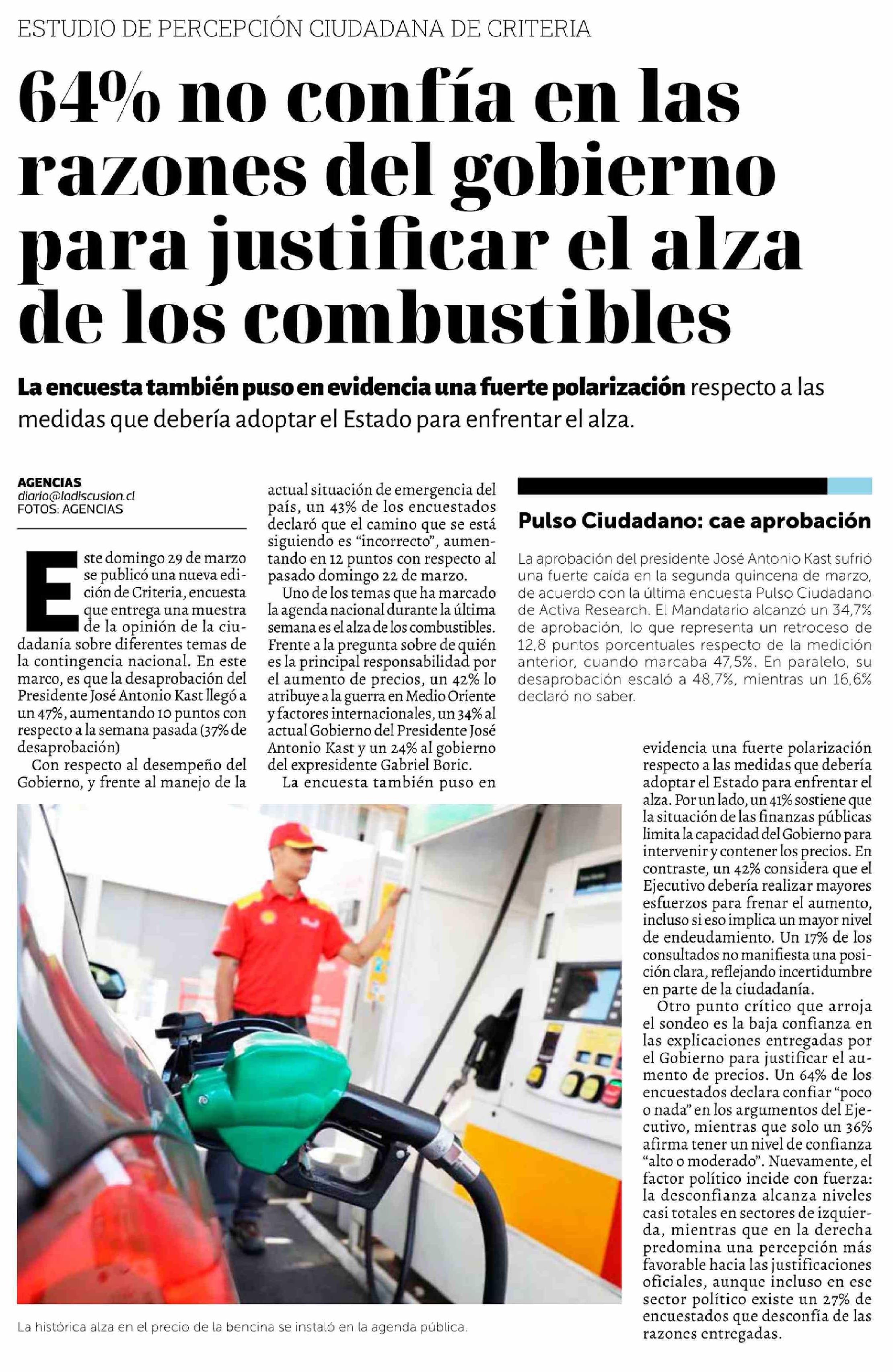 64% No confía en las razones del gobierno para justificar el alza de los combustibles