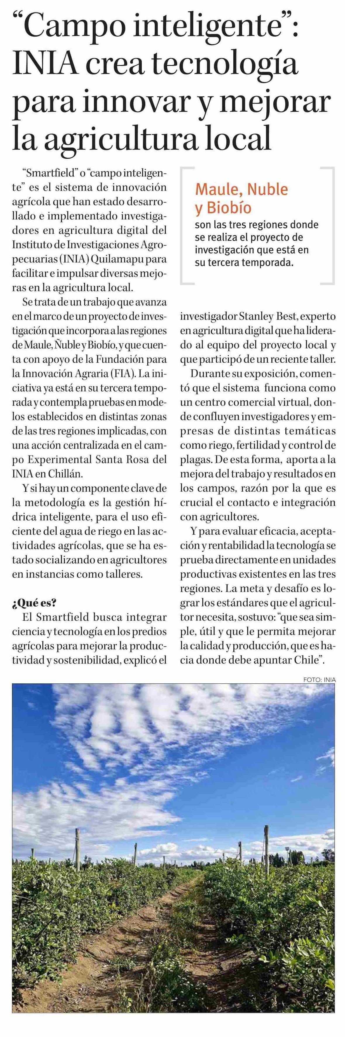 “Campo inteligente”: INIA crea tecnología para innovar y mejorar la agricultura local