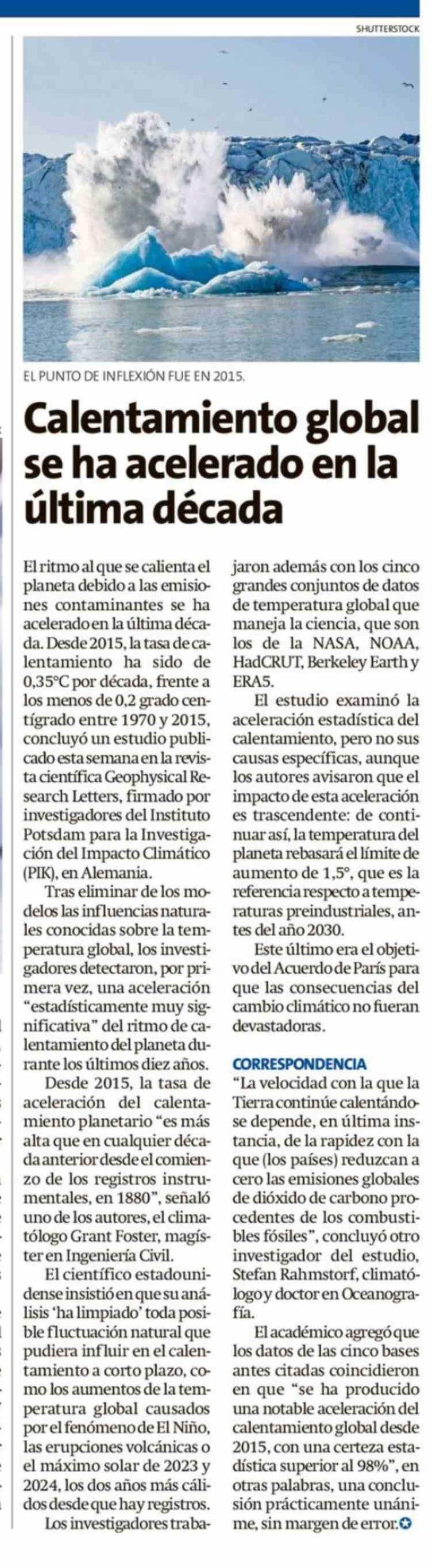 Calentamiento global se ha acelerado en la última década