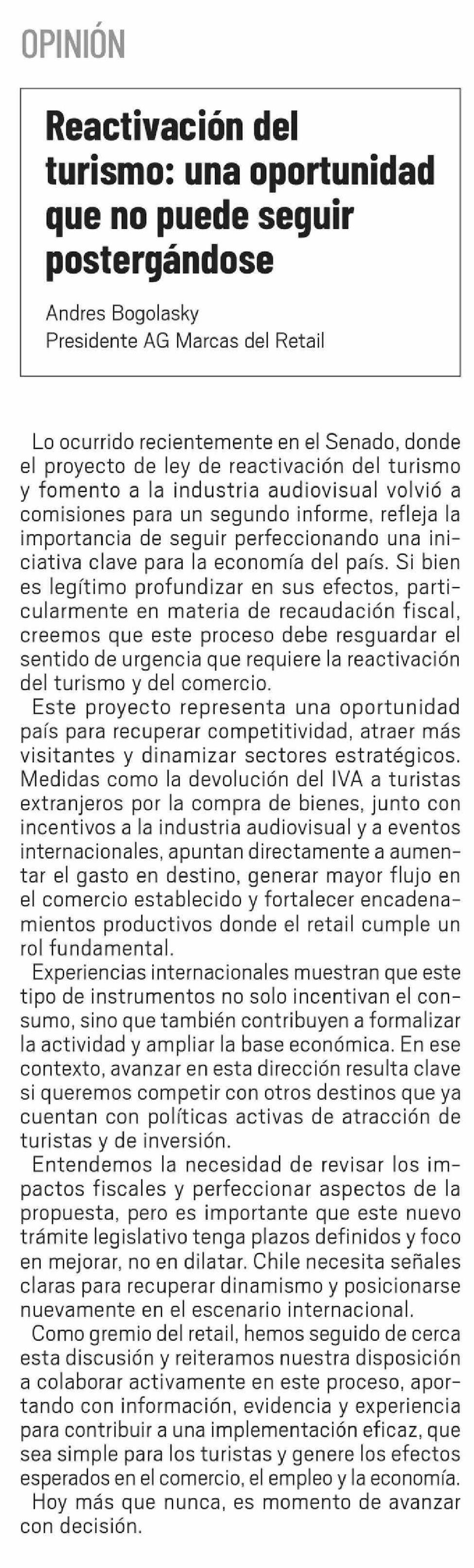 Columnas de Opinión: Reactivación del turismo: una oportunidad que no puede seguir postergándose
