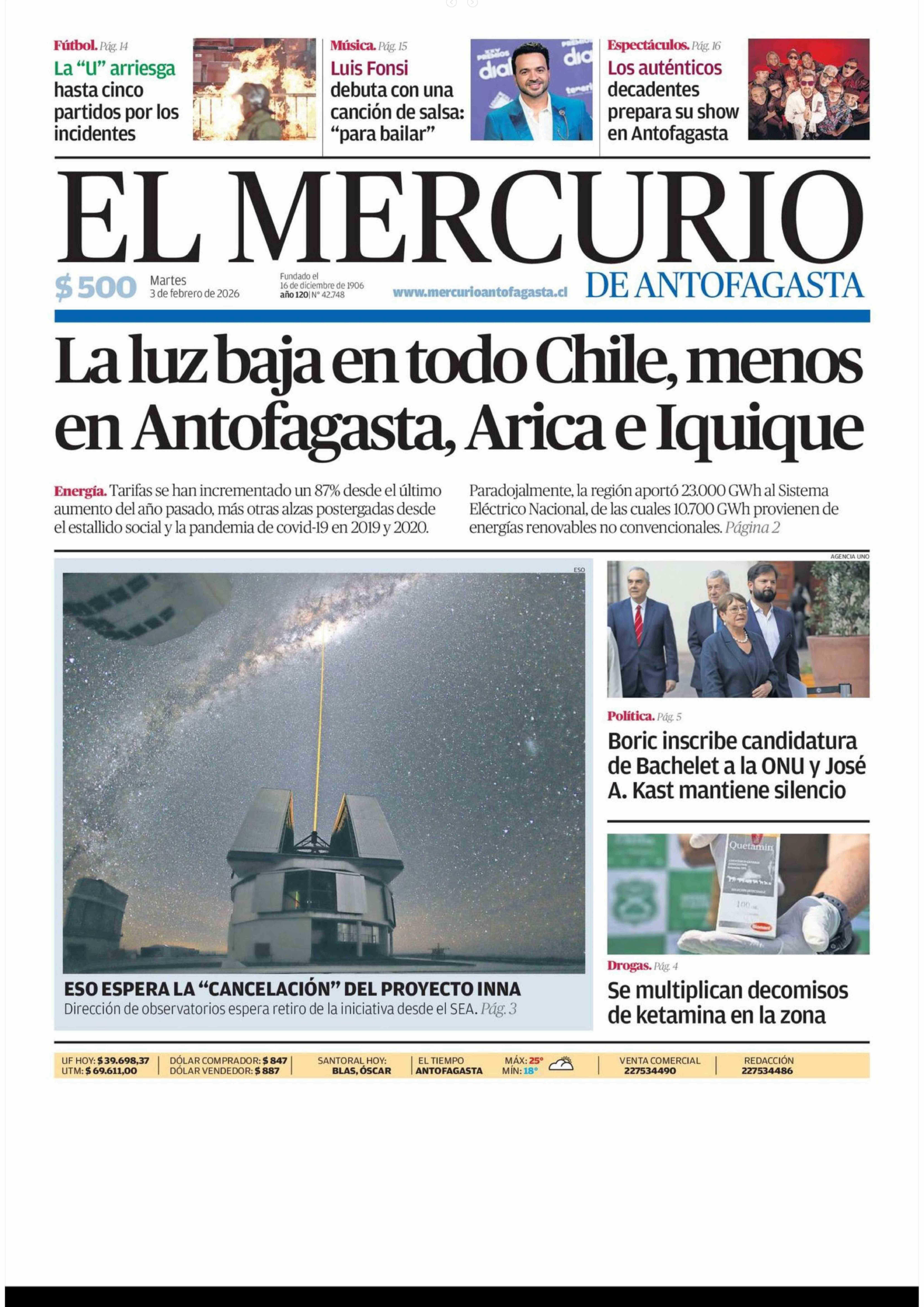 PORTADA EL MERCURIO DE ANTOFAGASTA CHILE