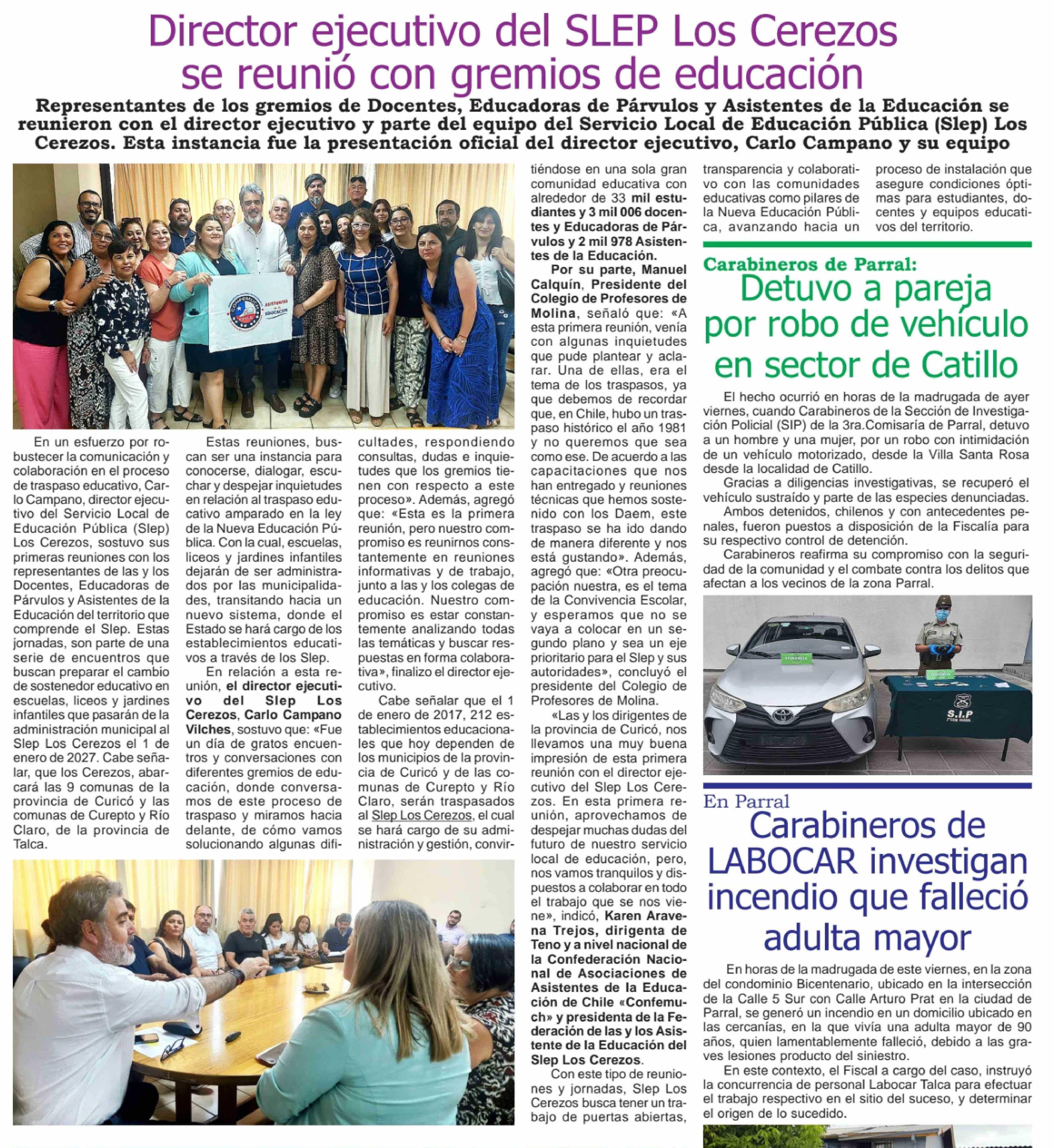 Director ejecutivo del SLEP Los Cerezos se reunió con gremios de educación