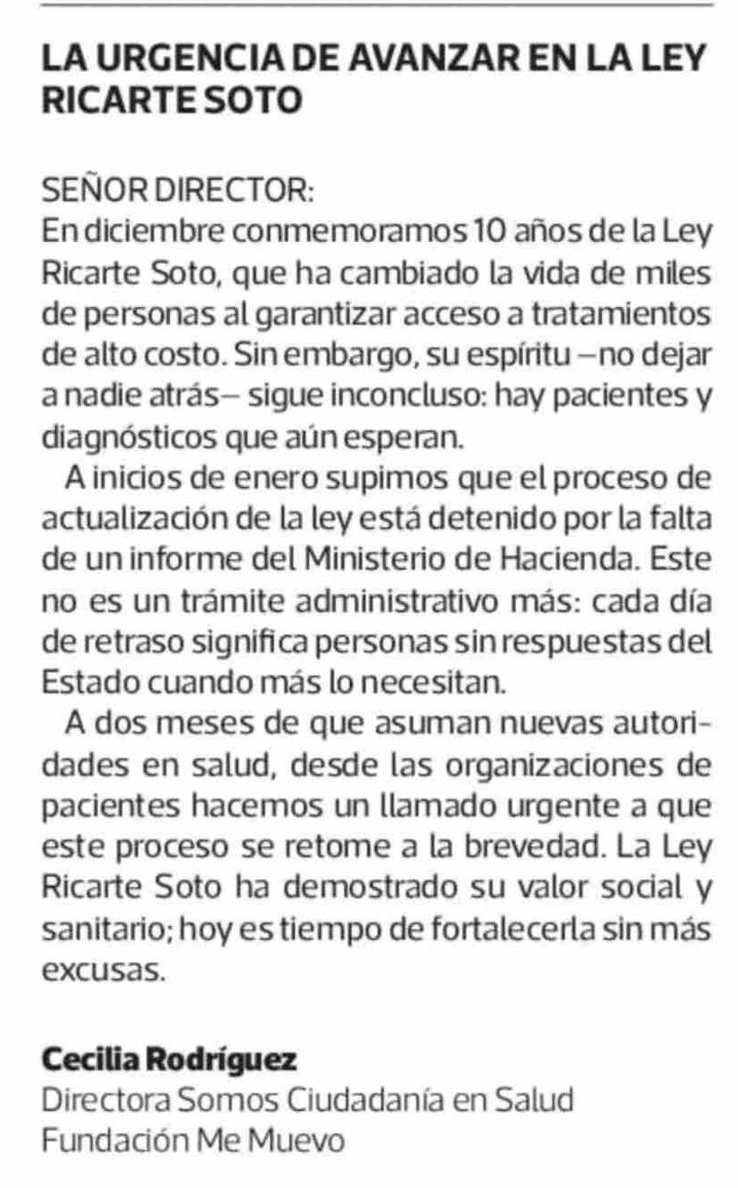 Título: Cartas: LA URGENCIA DE AVANZAR EN LA LEY RICARTE SOTO