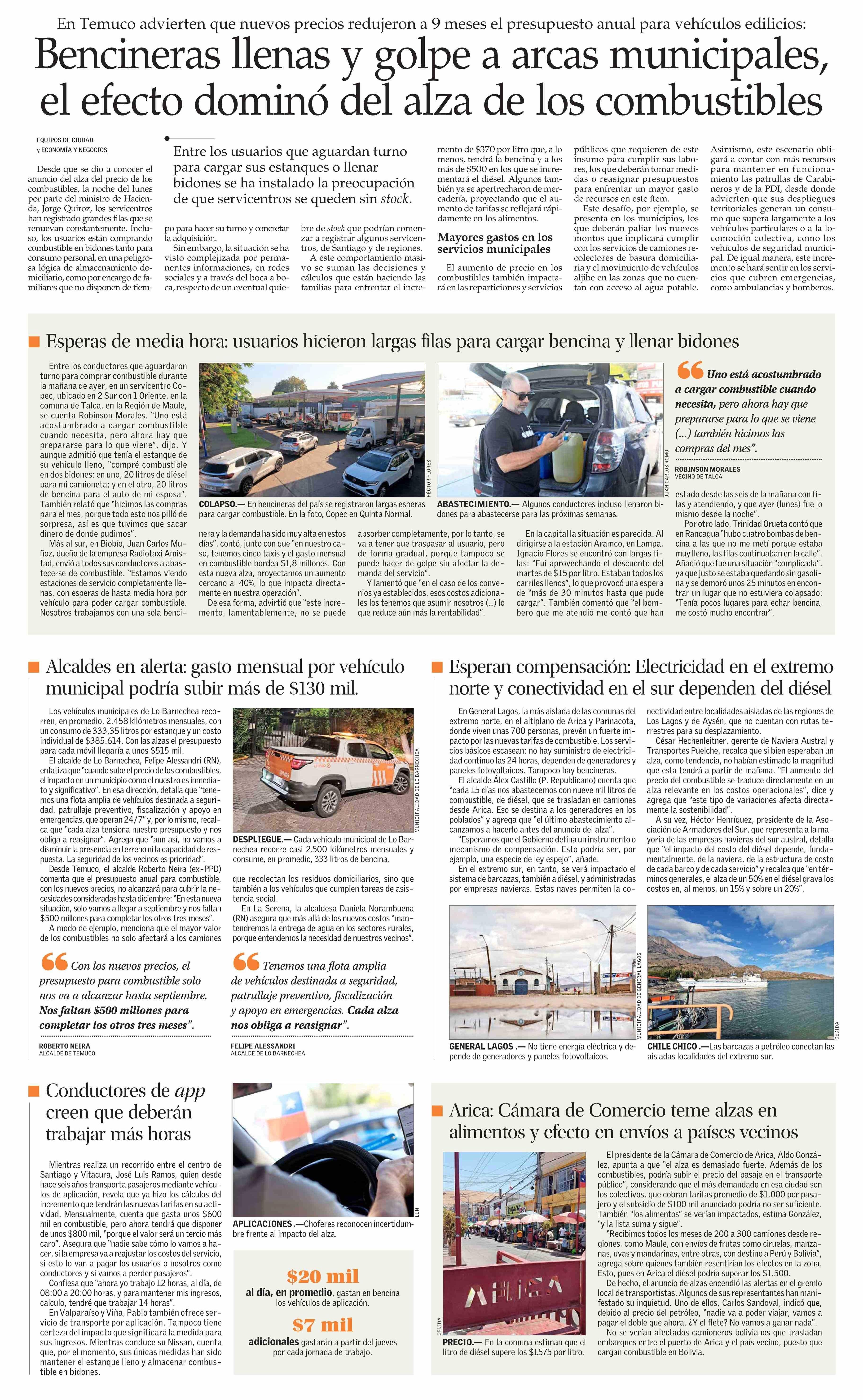 Bencineras llenas y golpe a arcas municipales, el efecto dominó del alza de los combustibles