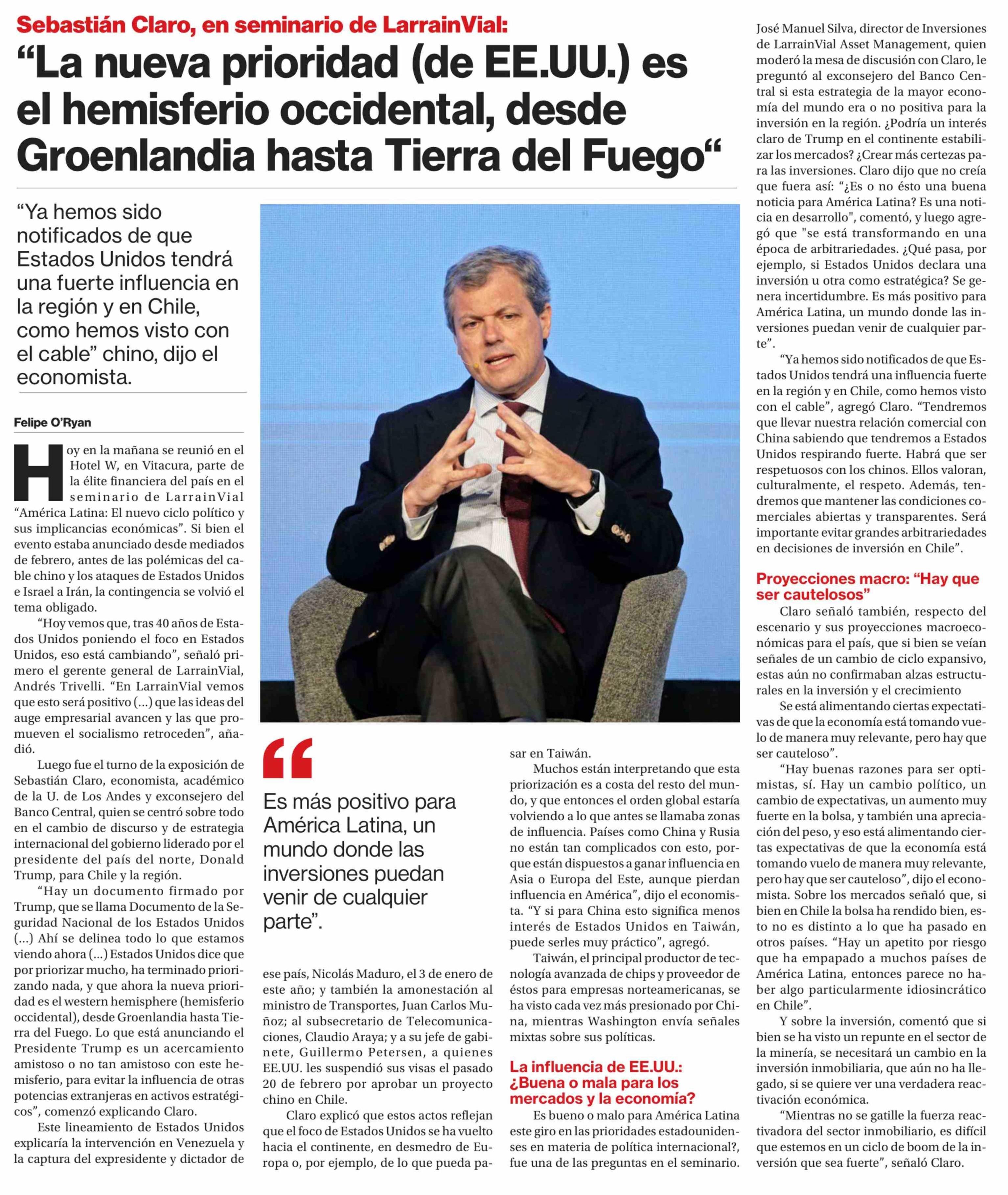 "La nueva prioridad (de EE.UU.) es el hemisferio occidental, desde Groenlandia hasta Tierra del Fuego“