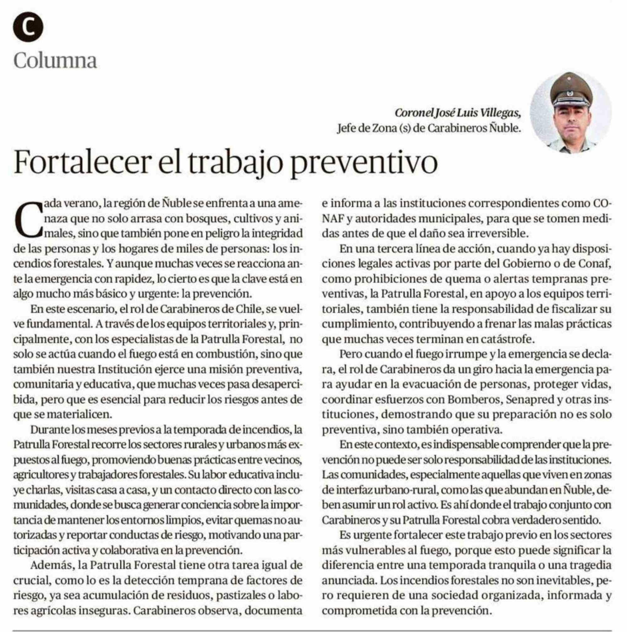 Columnas de Opinión: Fortalecer el trabajo preventivo
