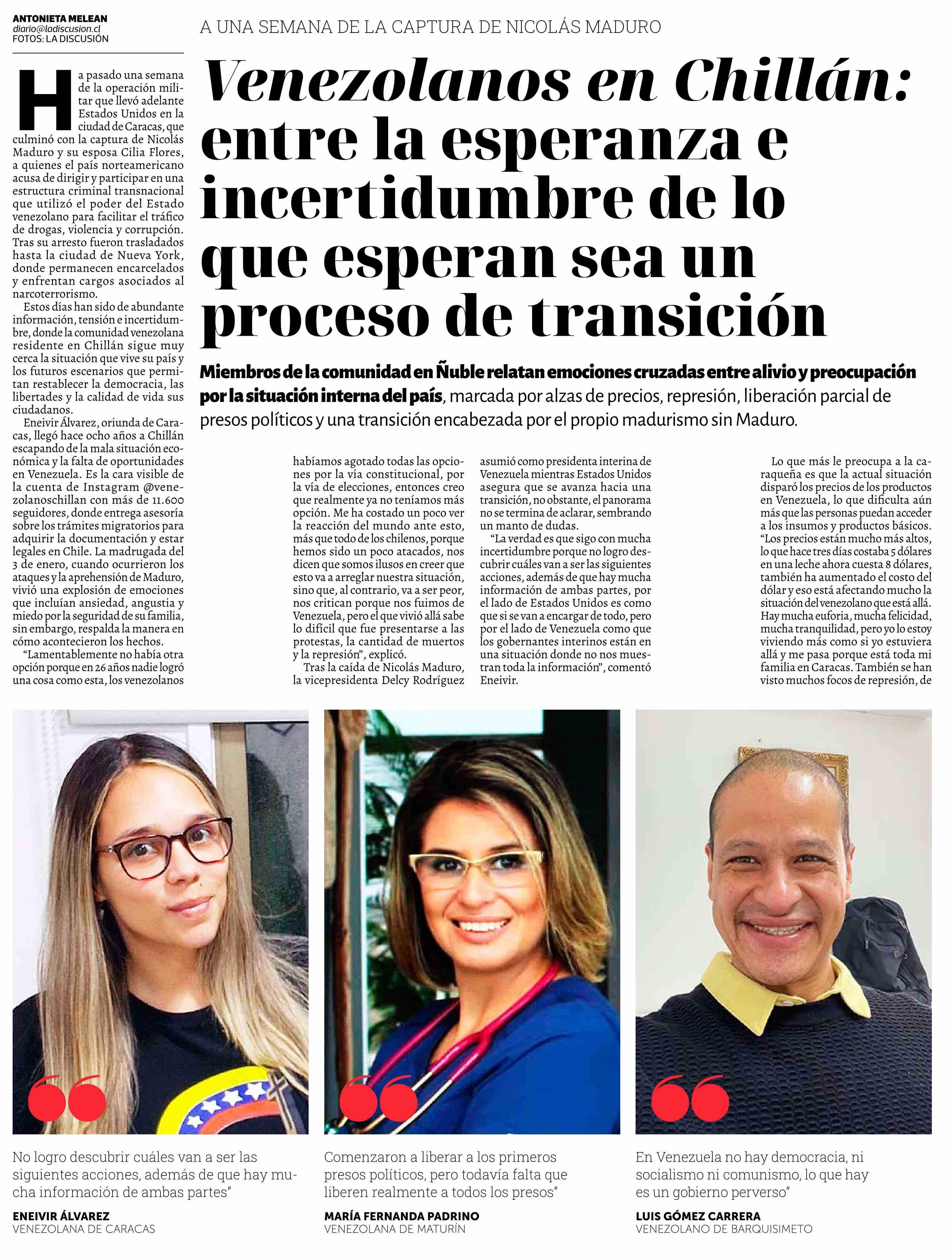 Venezolanos en Chillán: entre la esperanza e incertidumbre de lo que esperan sea un proceso de transición