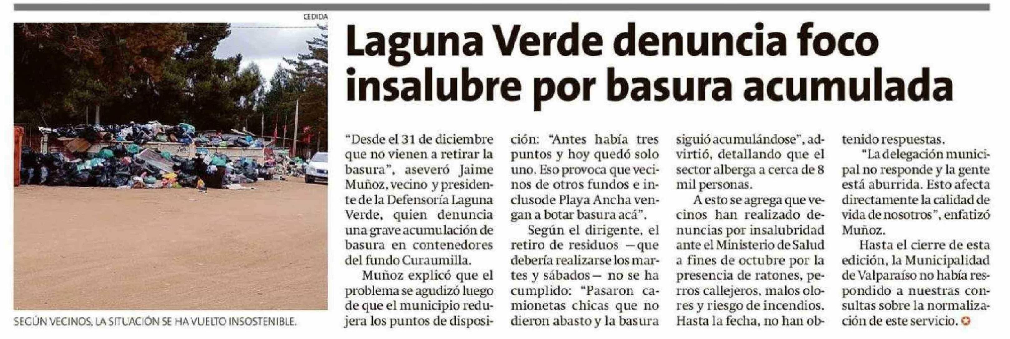 Laguna Verde denuncia foco insalubre por basura acumulada