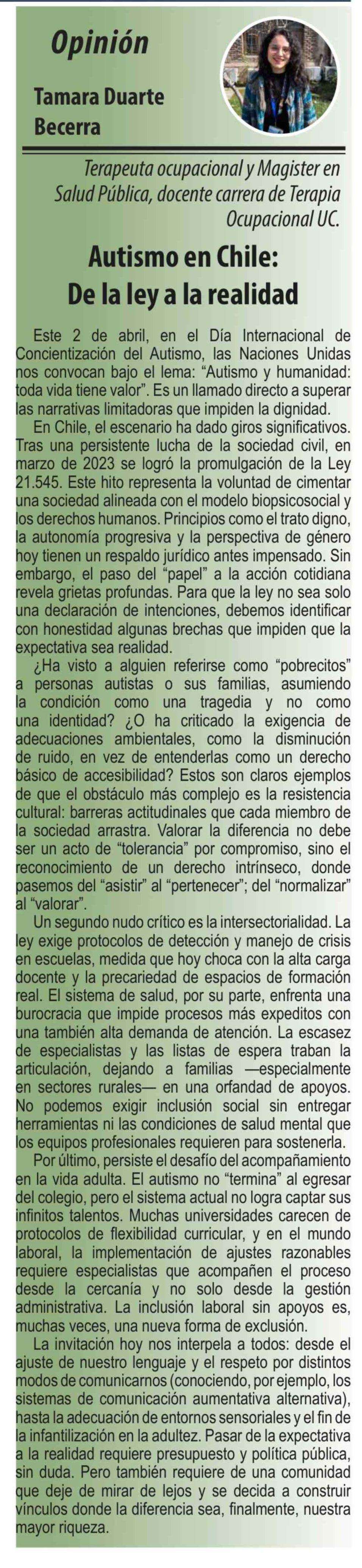 Columnas de Opinión: Autismo en Chile: De la ley a la realidad