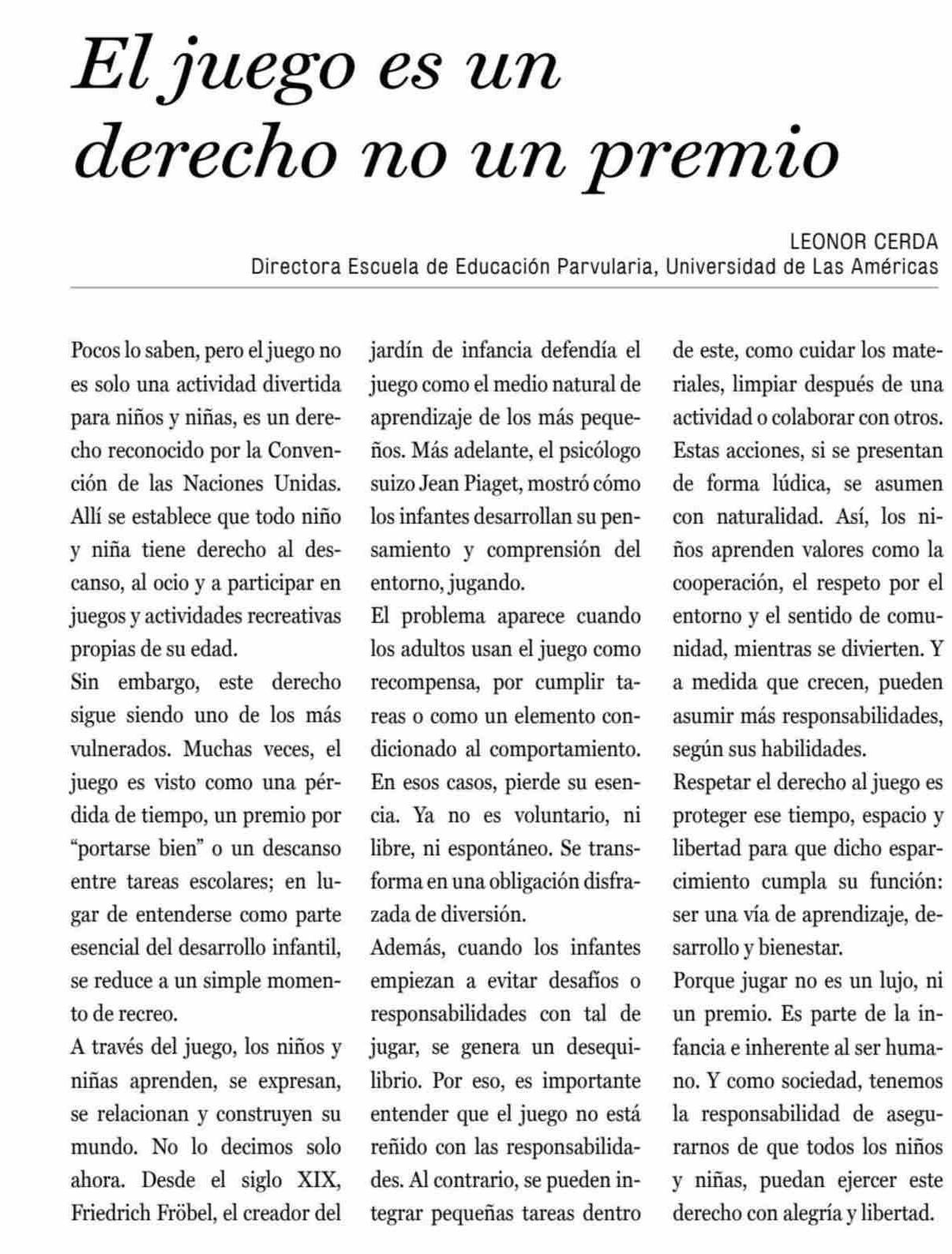 CARTAS: El juego es un derecho no un premio
