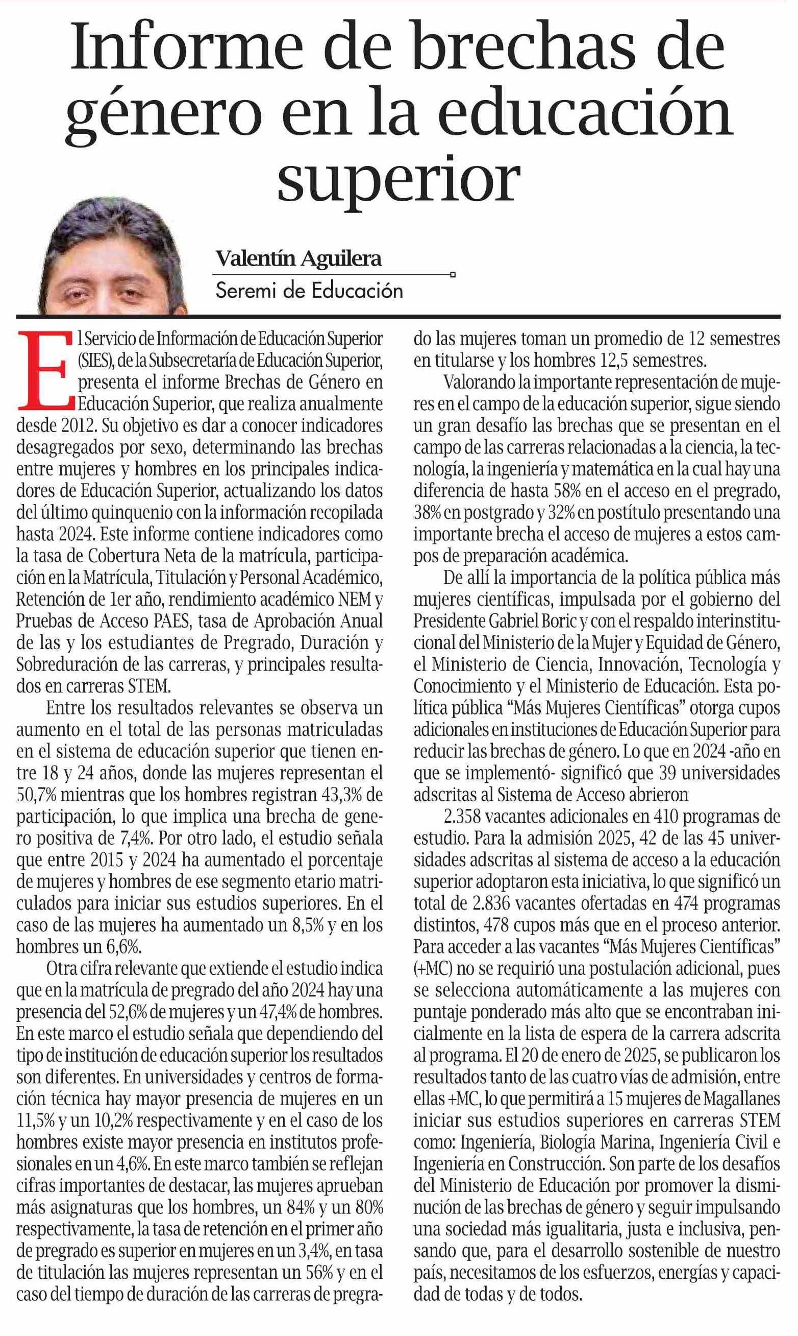 Columnas de Opinión: Informe de brechas de género en la educación superior