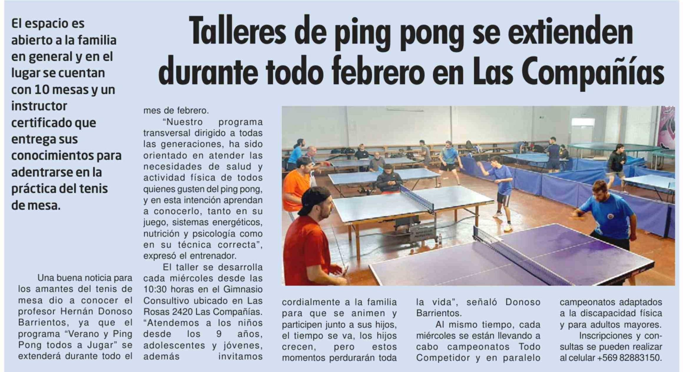 Talleres de ping pong se extienden durante todo febrero en Las Compañías