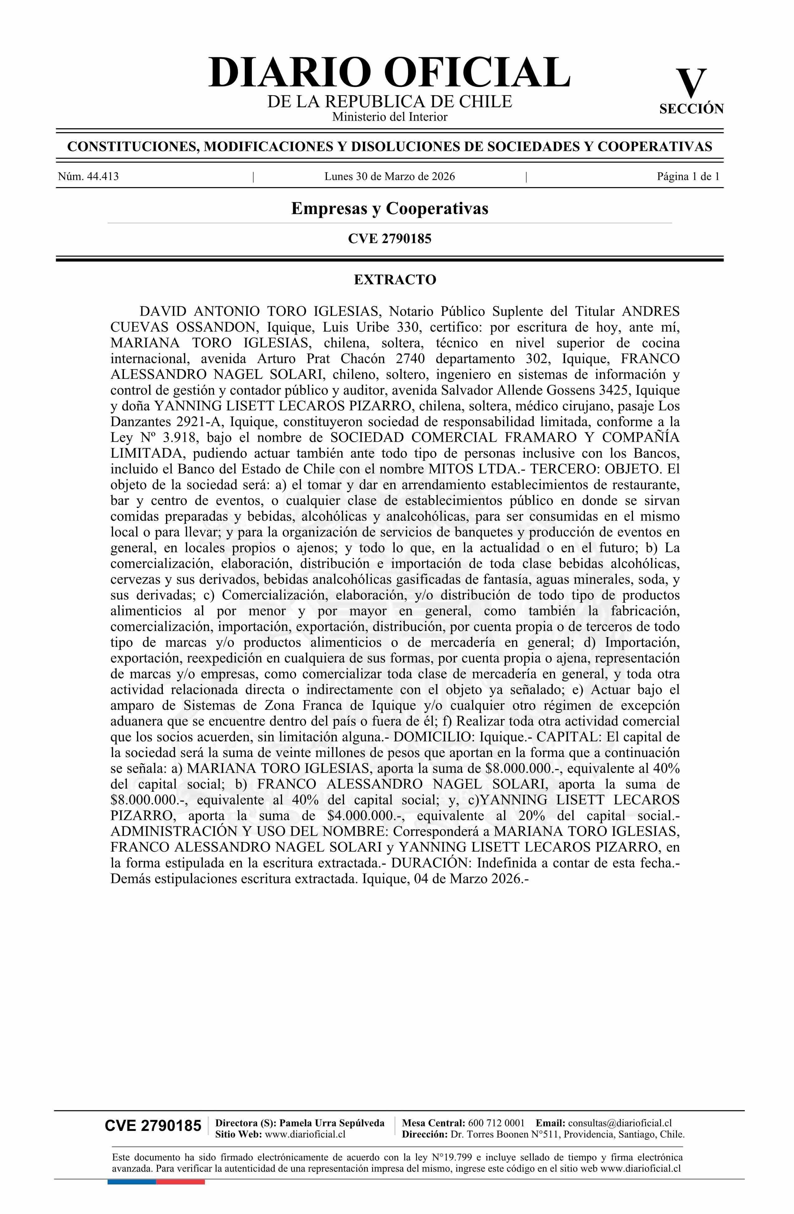 SOCIEDAD COMERCIAL FRAMARO Y COMPAÑÍA LIMITADA