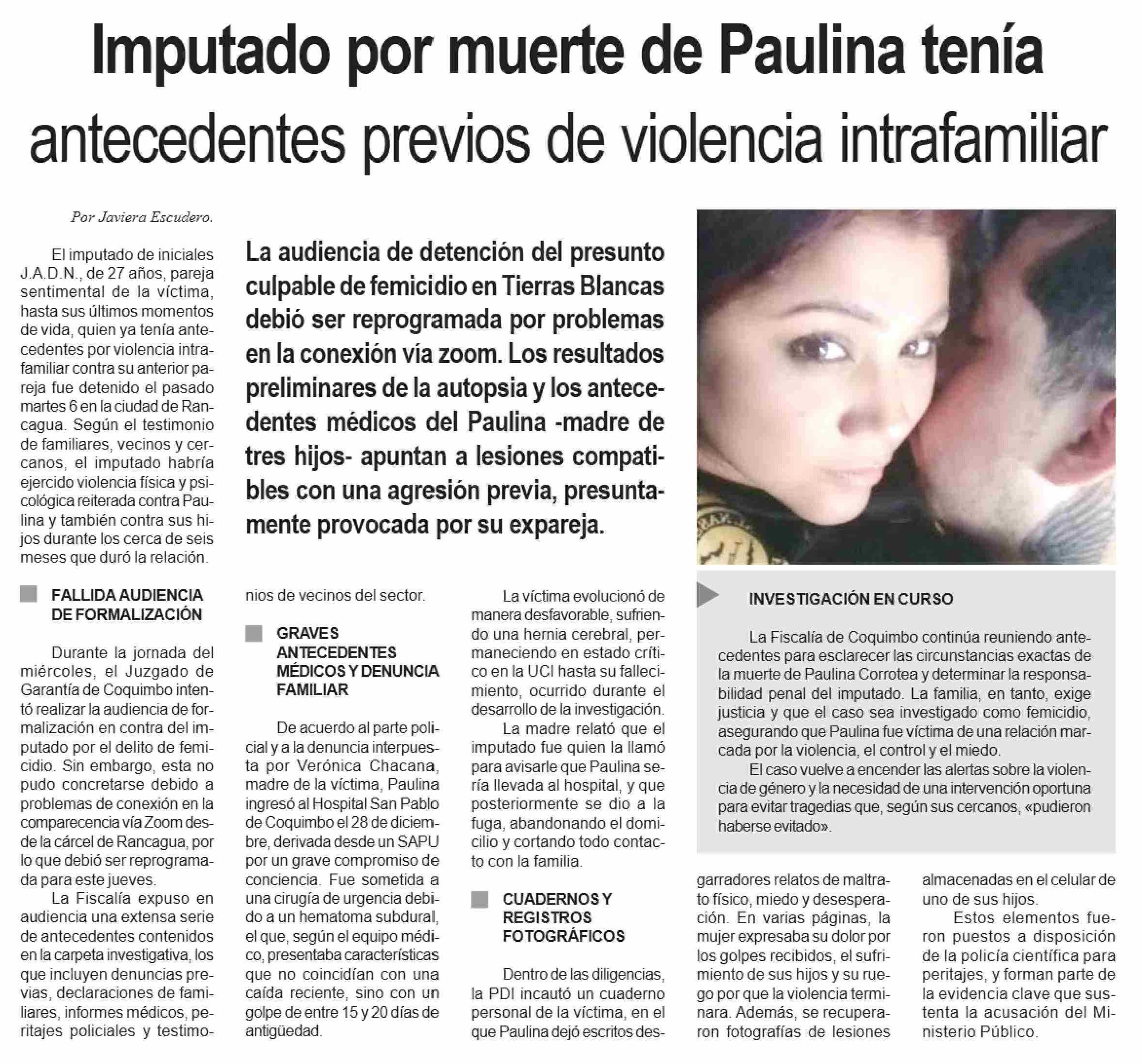 Título: Imputado por muerte de Paulina tenía antecedentes previos de violencia intrafamiliar