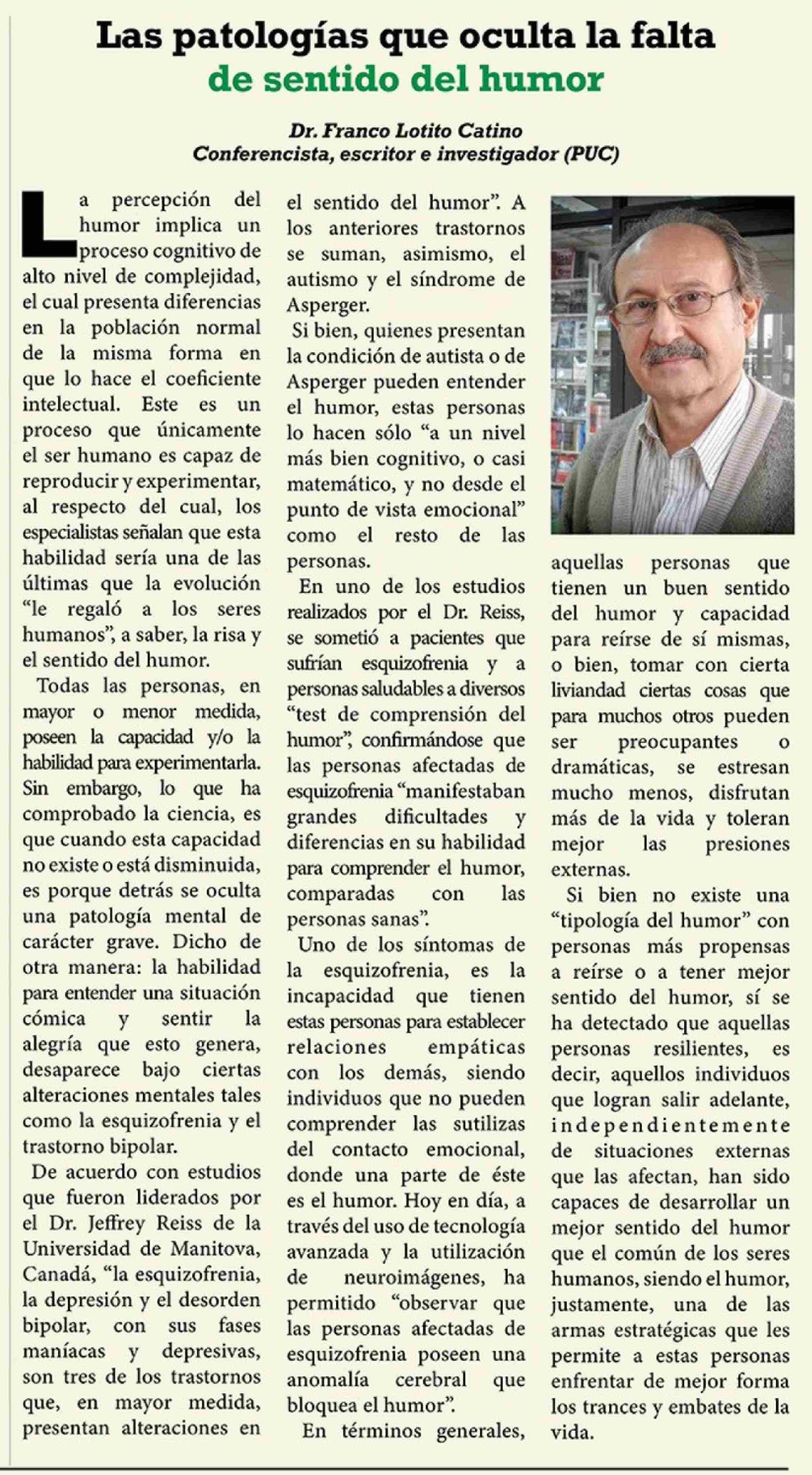 Título: Columnas de Opinión: Las patologías que oculta la falta de sentido del humor