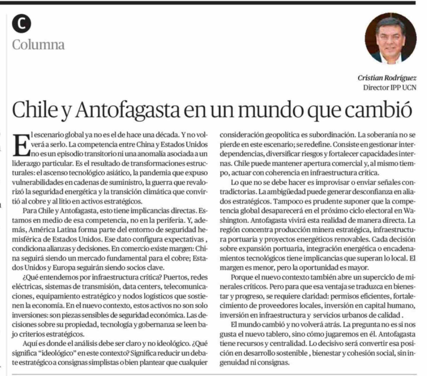 Columnas de Opinión: Chile y Antofagasta en un mundo que cambió