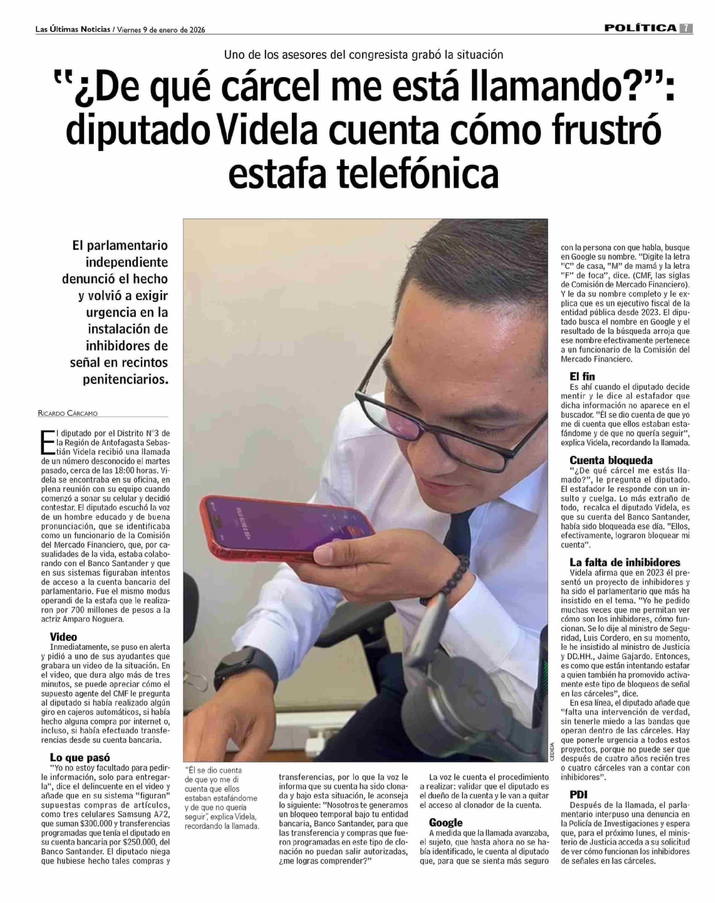 "¿De qué cárcel me está Namando?”: diputado Videla cuenta como frustro estafa telefónica