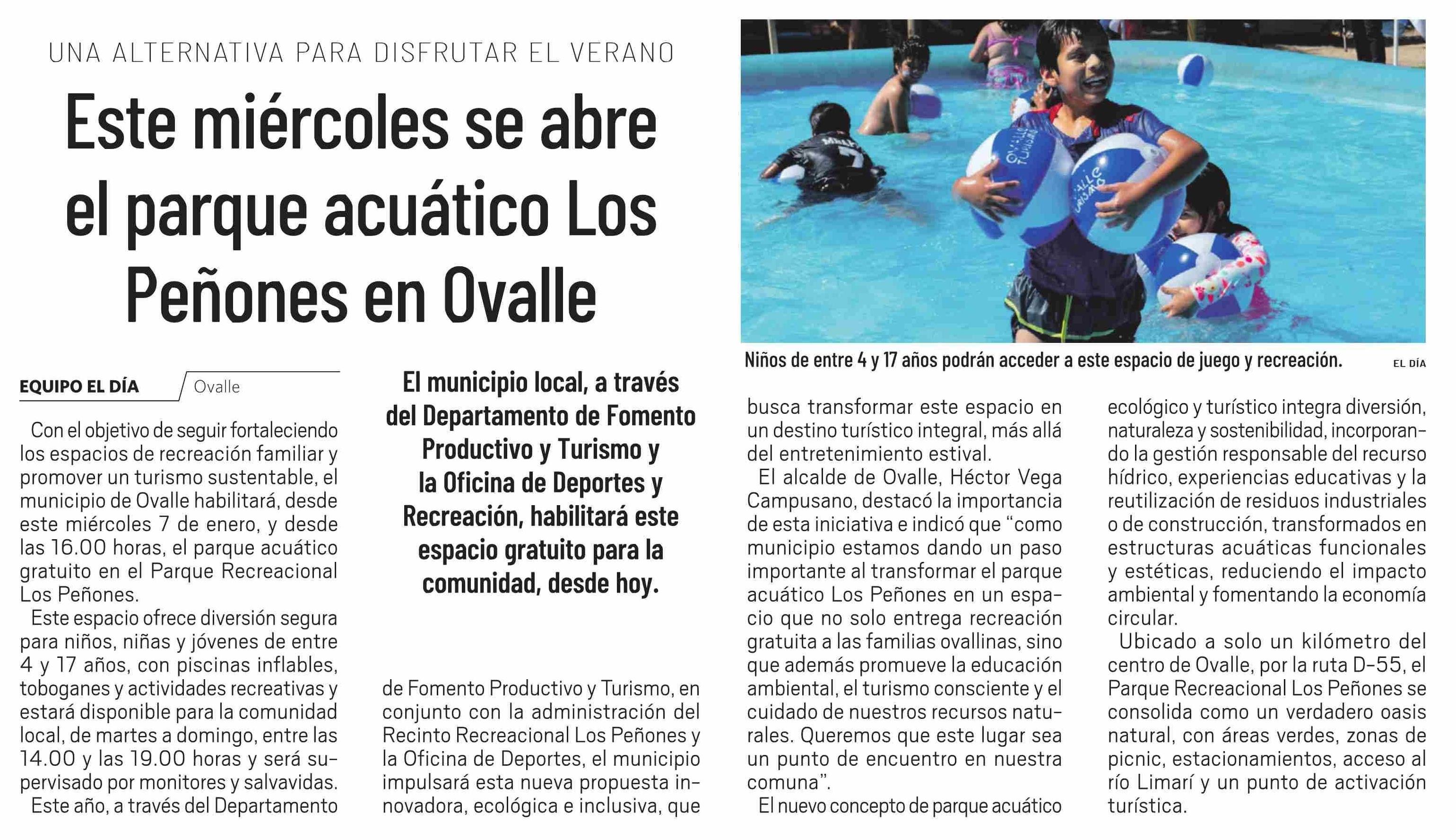 Este miércoles se abre el parque acuático Los Peñones en Ovalle