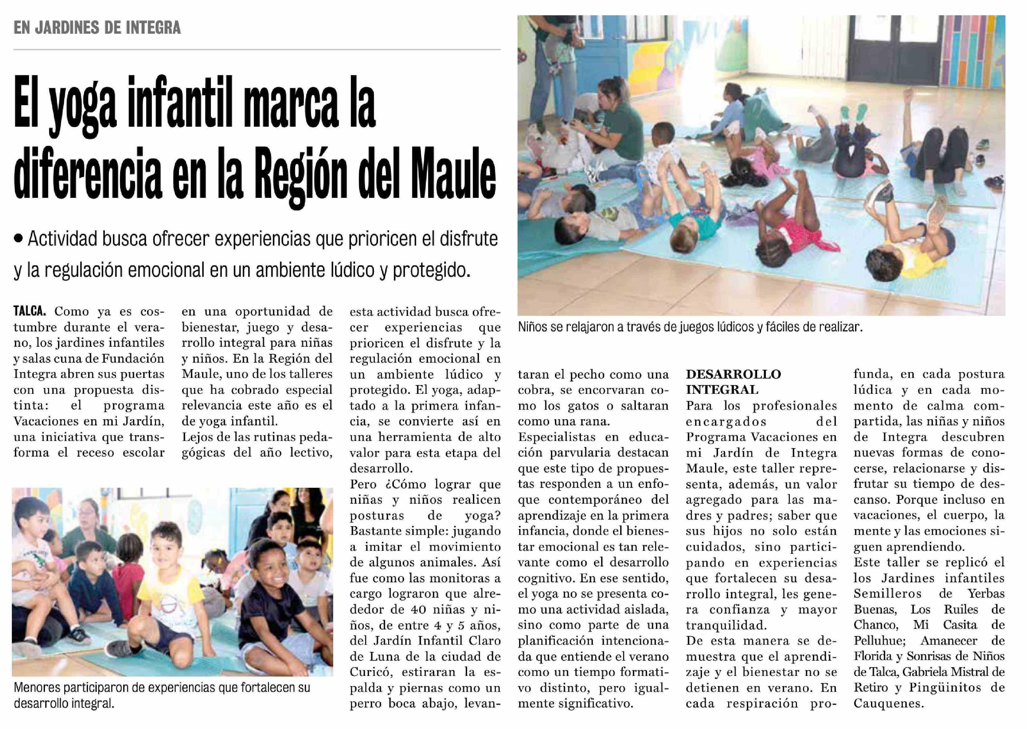 Título: El yoga infantil marca la diferencia en la Región del Maule