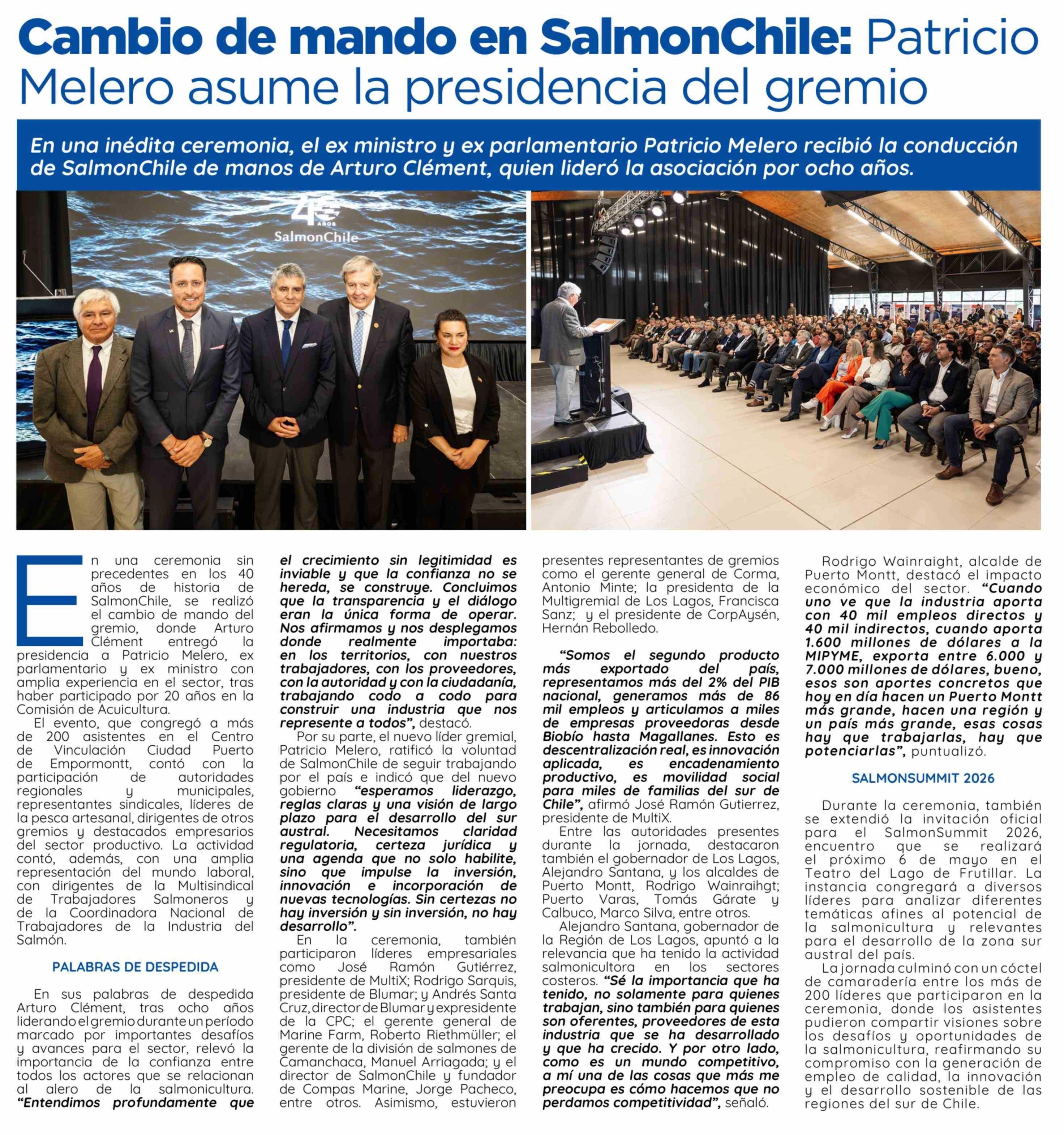 Cambio de mando en SalmonChile: Patricio Melero asume la presidencia del gremio