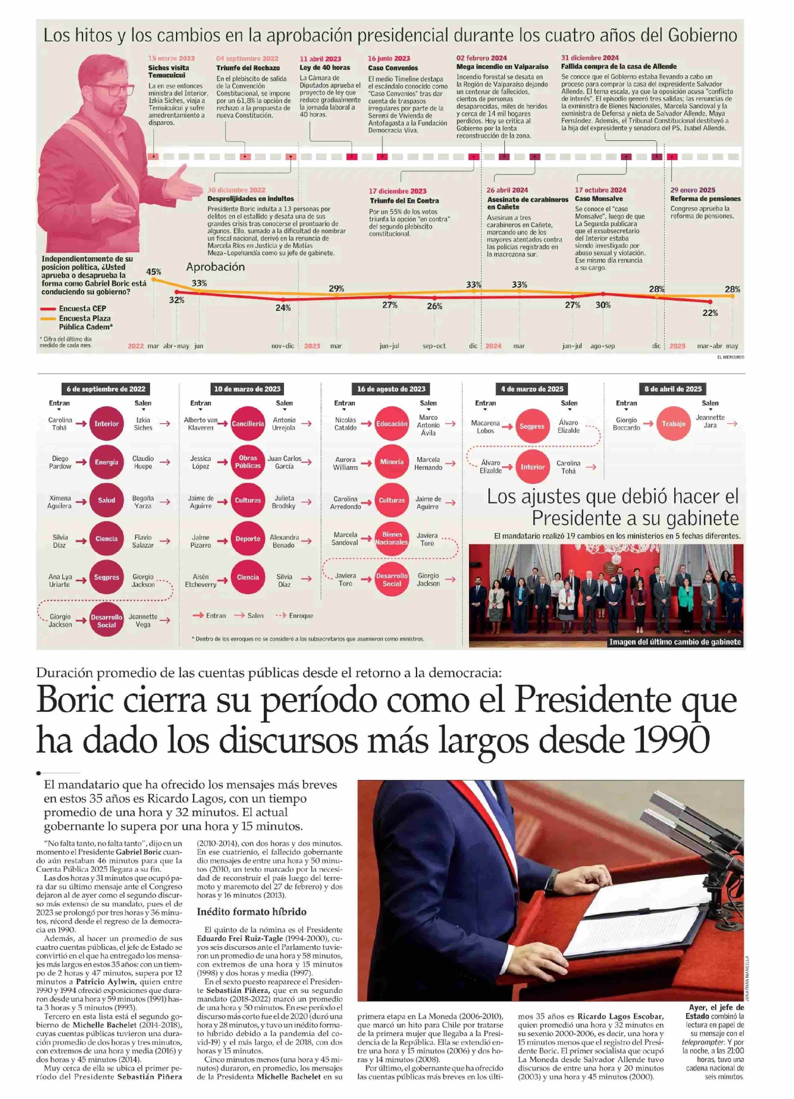 Boric cierra su período como el Presidente que ha dado los discursos más largos desde 1990