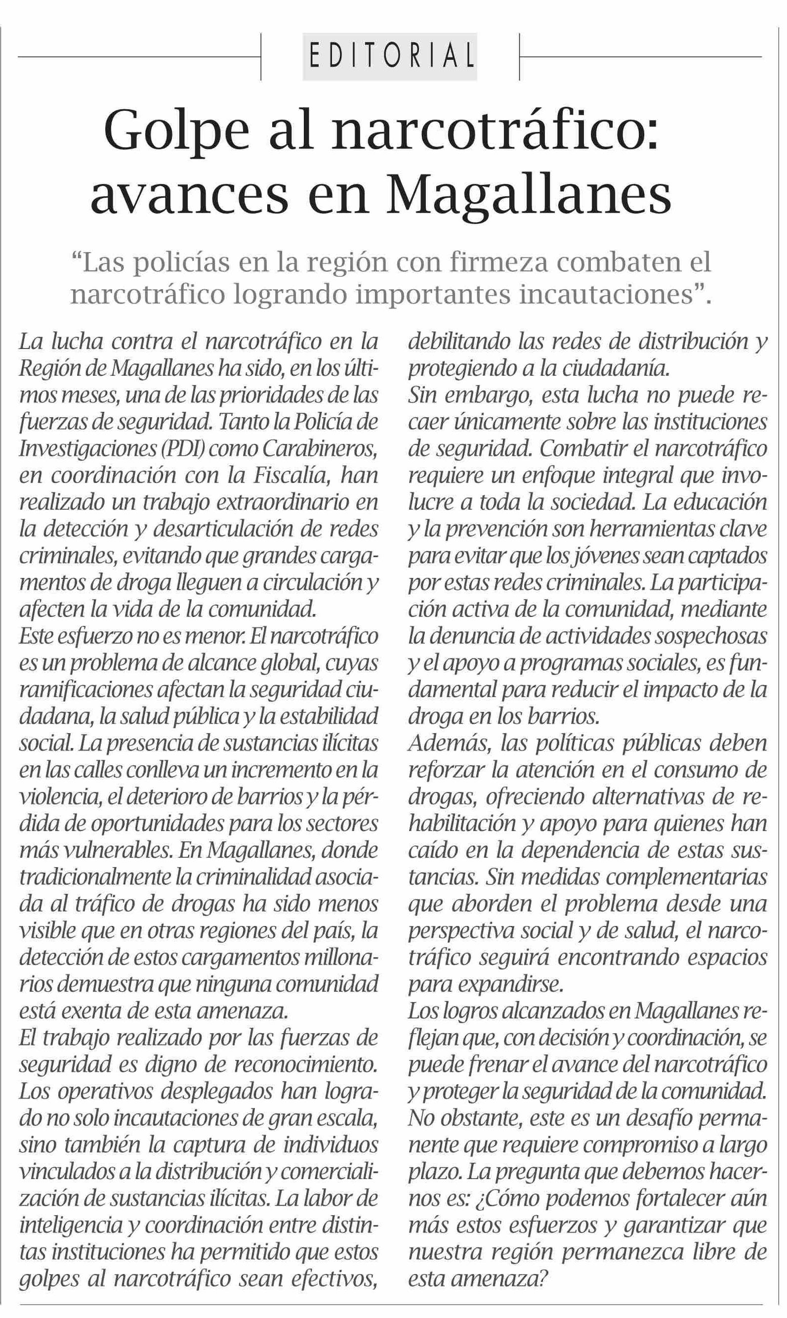EDITORIAL: Golpe al narcotráfico: avances en Magallanes