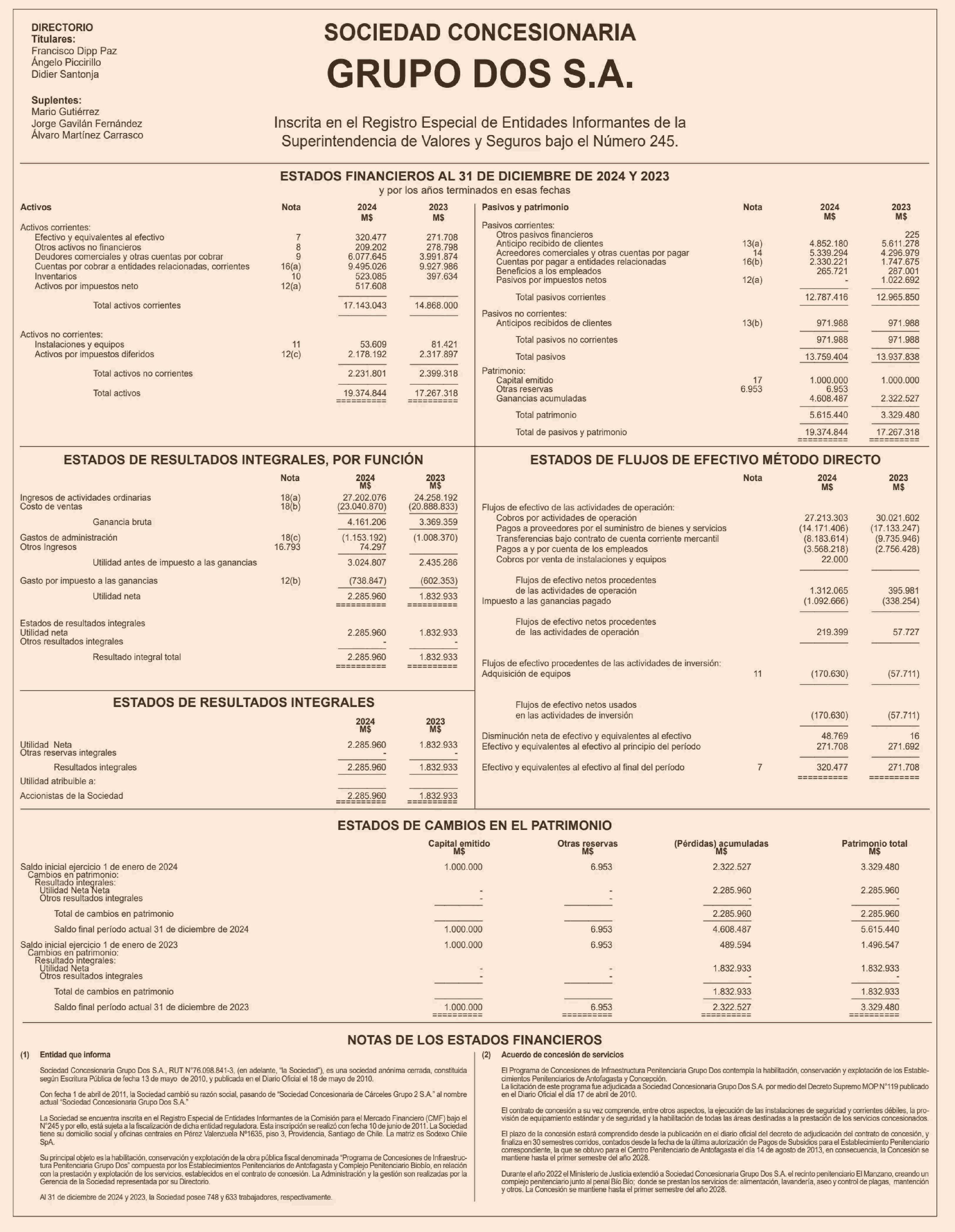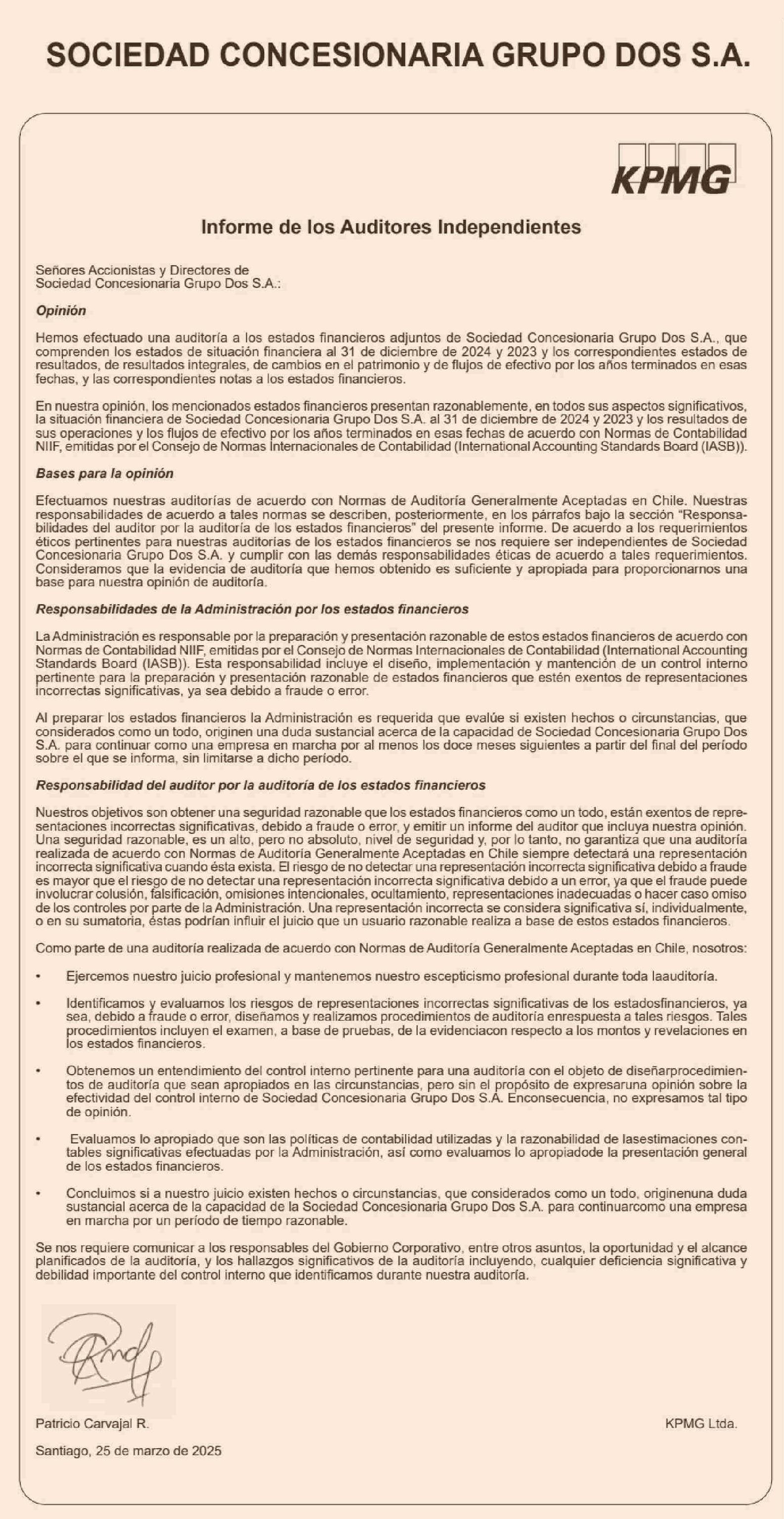 EXTRACTOS: SOCIEDAD CONCESIONARIA GRUPO DOS S.A.