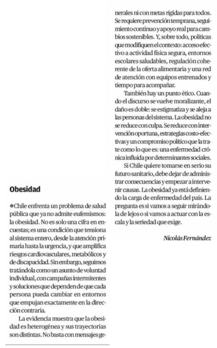 Cartas: Obesidad