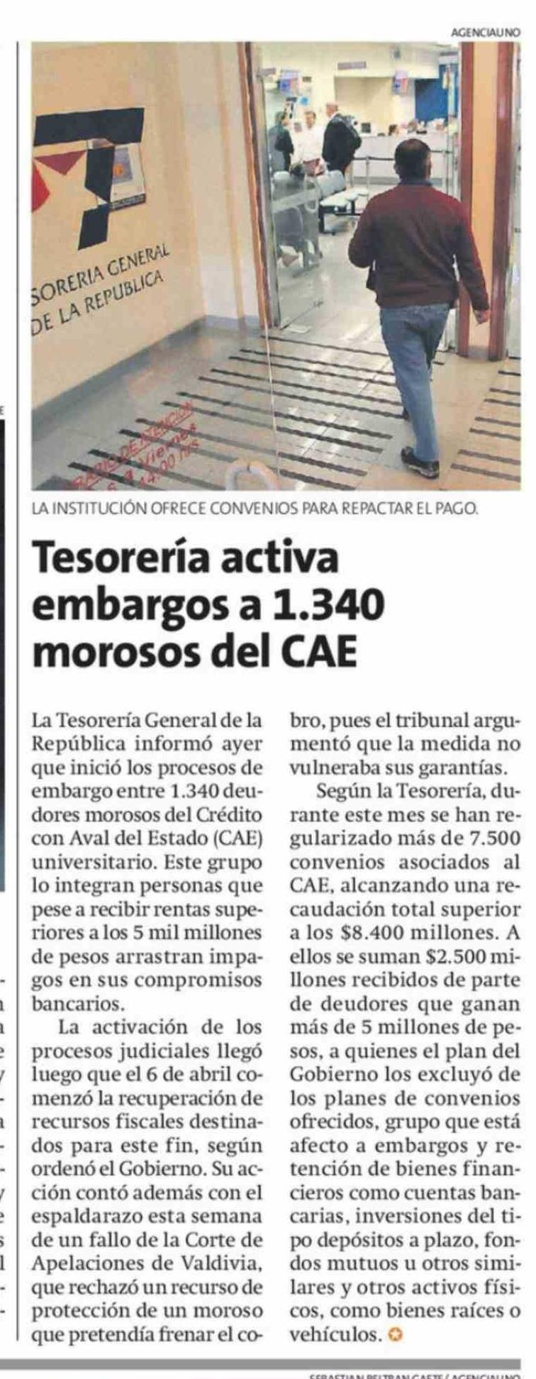 Tesorería activa embargos a 1.340 morosos del CAE