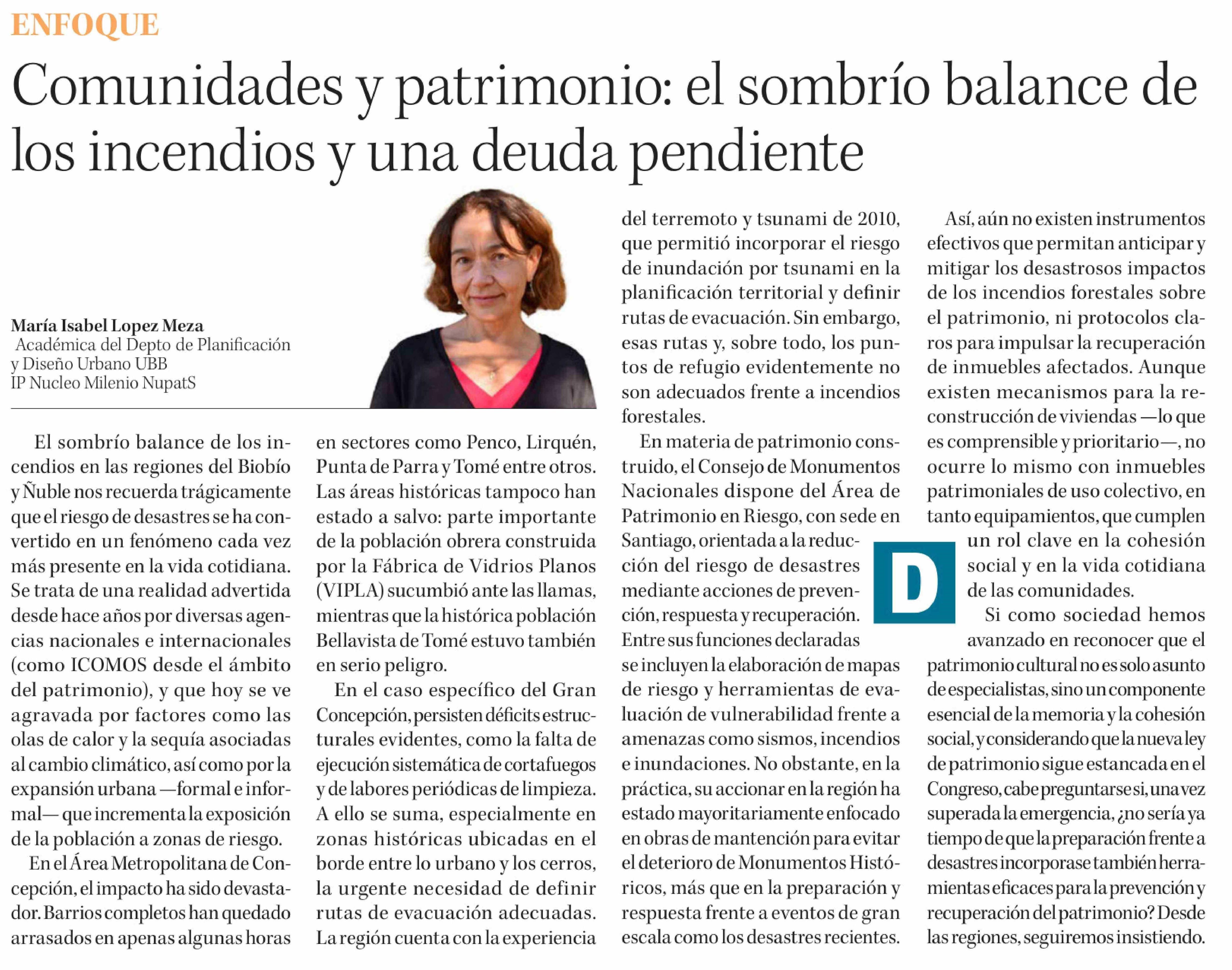 Columnas de Opinión: Comunidades y patrimonio: el sombrío balance de los incendios y una deuda pendiente