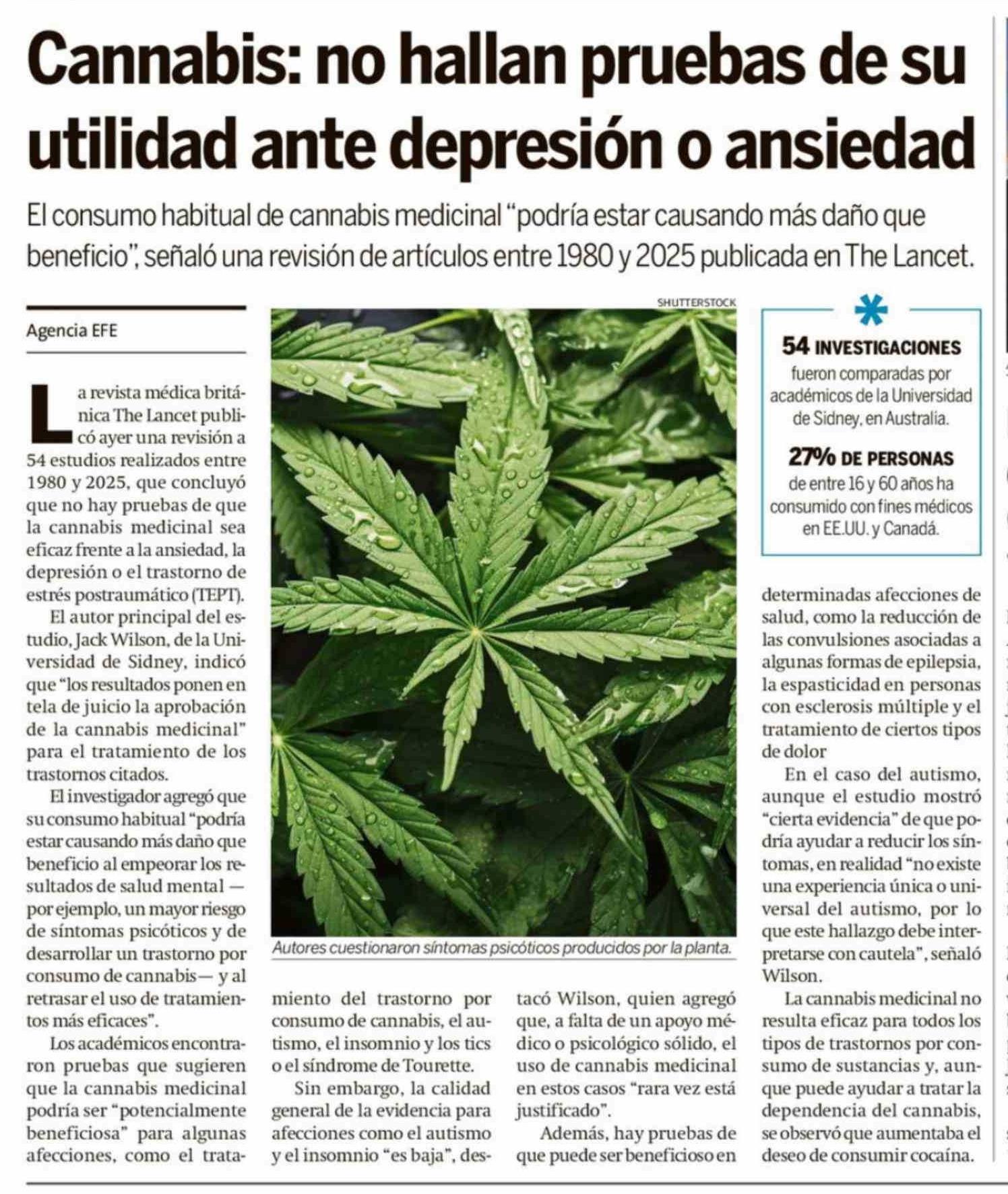 Cannabis: no hallan pruebas de su utilidad ante depresión o ansiedad