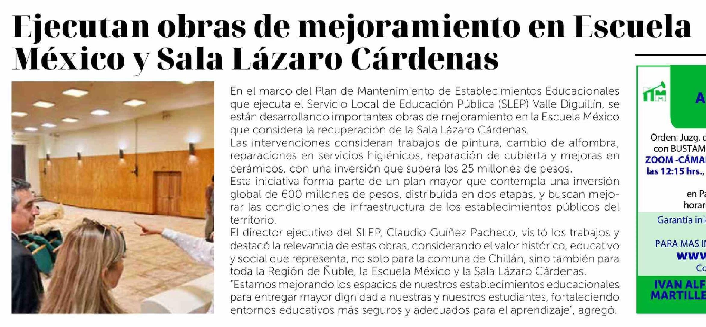 Ejecutan obras de mejoramiento en Escuela México y Sala Lázaro Cárdenas
