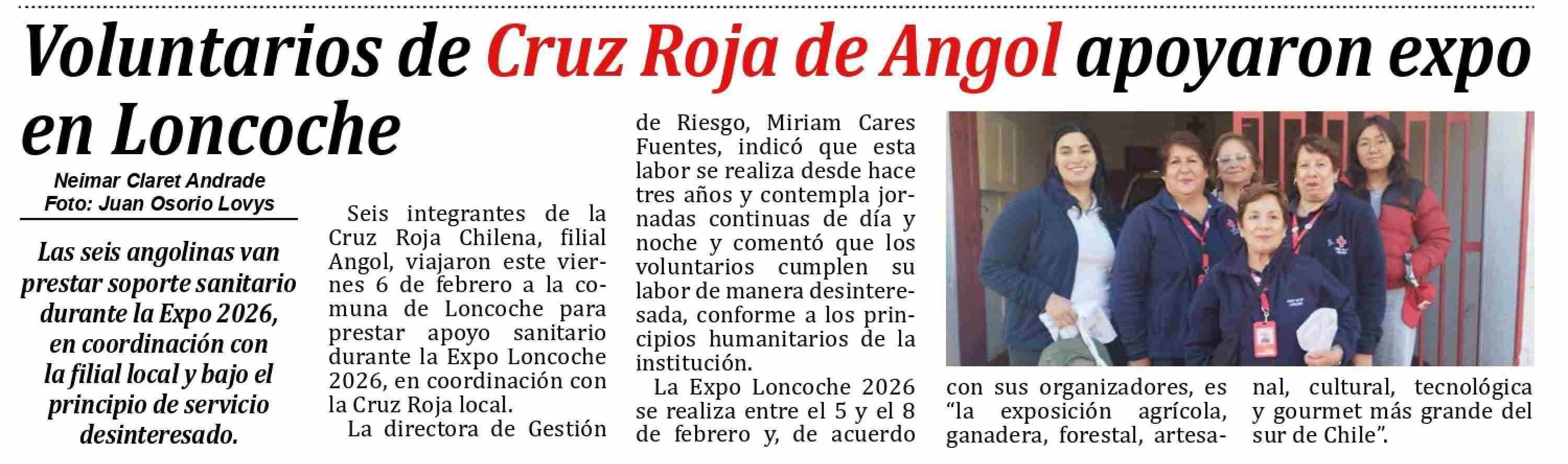 Voluntarios de Cruz Roja de Angol apoyaron expo en Loncoche