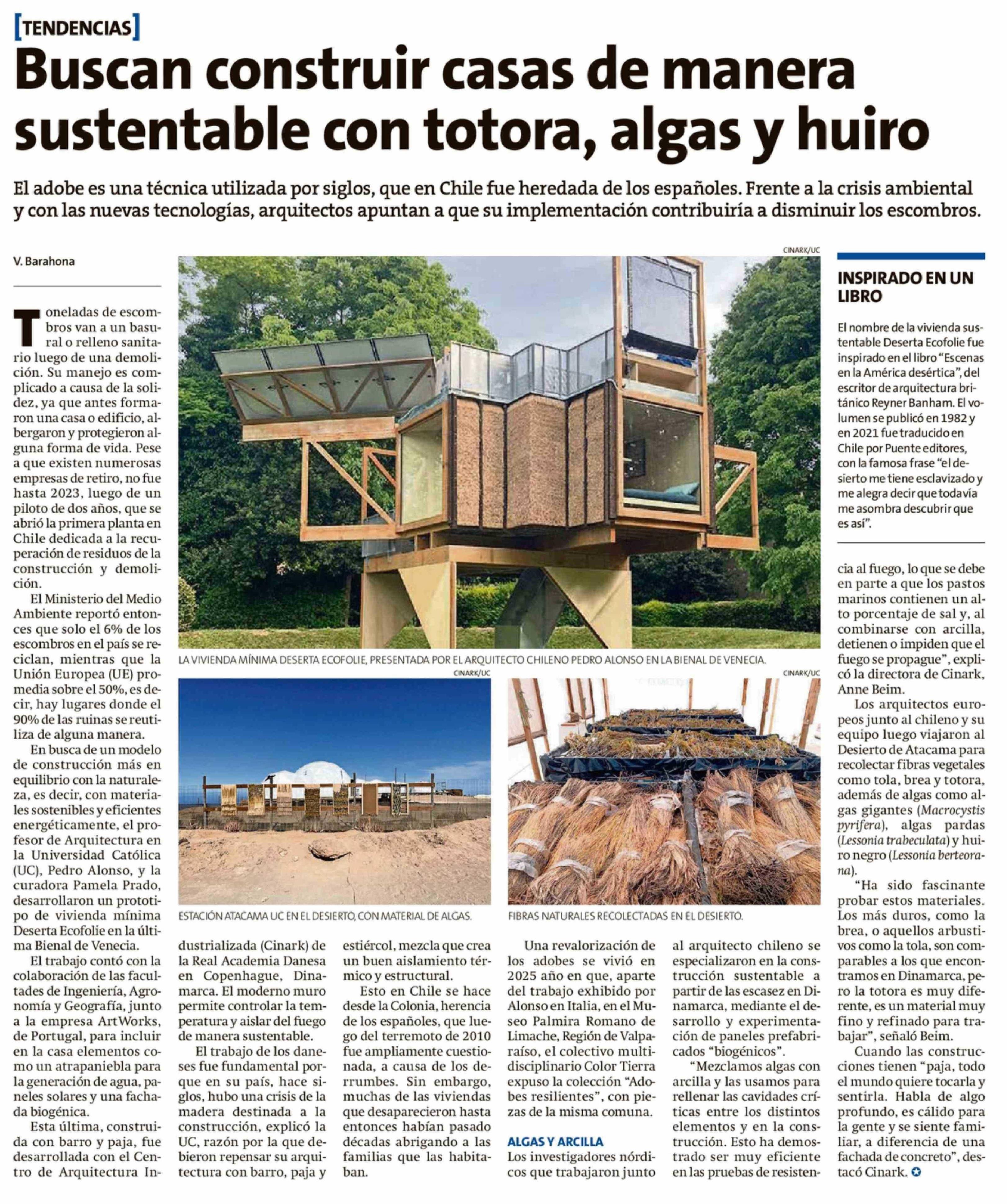 Buscan construir casas de manera sustentable con totora, algas y huiro