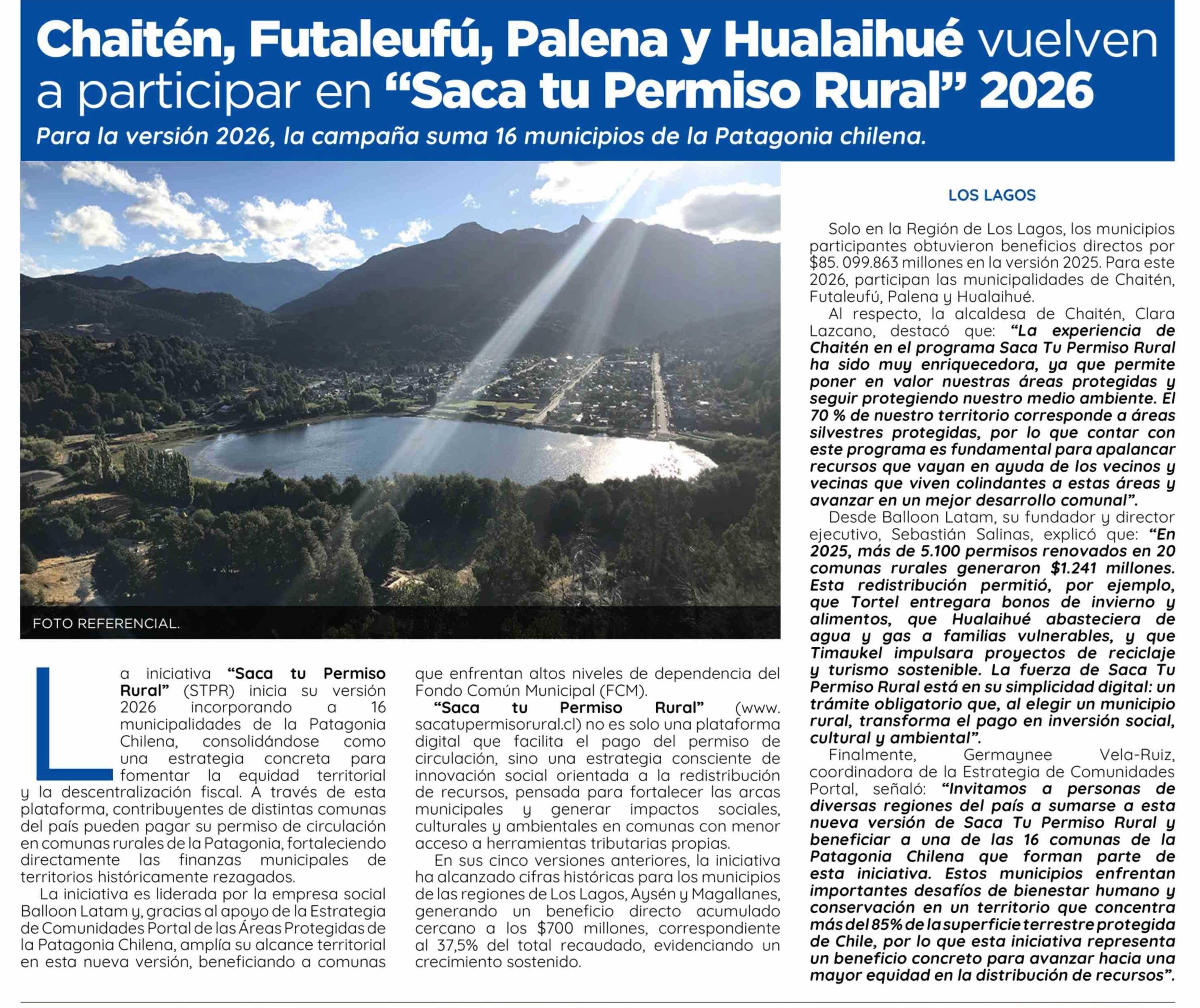Título: Chaitén, Futaleufú, Palena y Hualaihué vuelven a participar en "Saca tu Permiso Rural" 2026