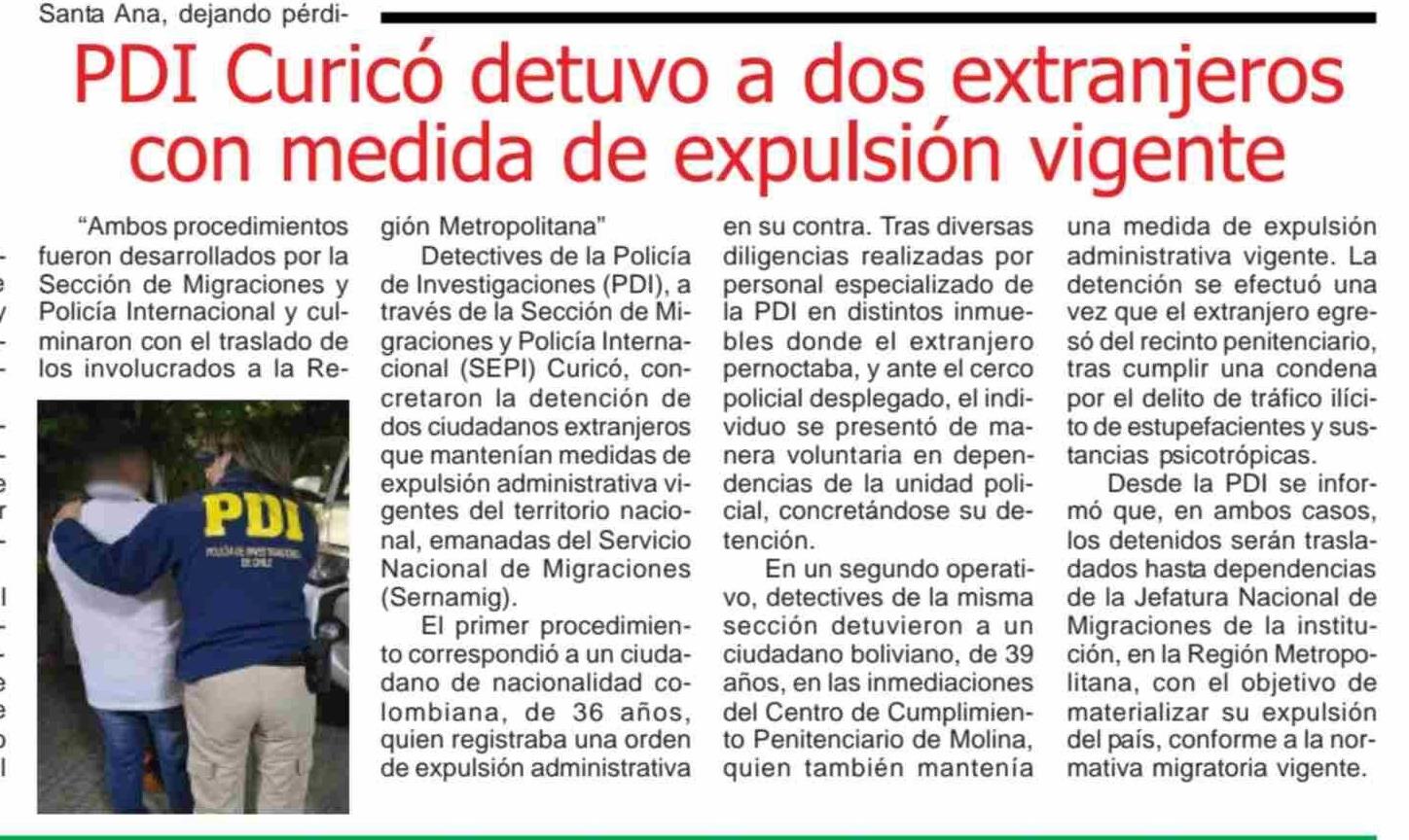 PDI Curicó detuvo a dos extranjeros con medida de expulsión vigente