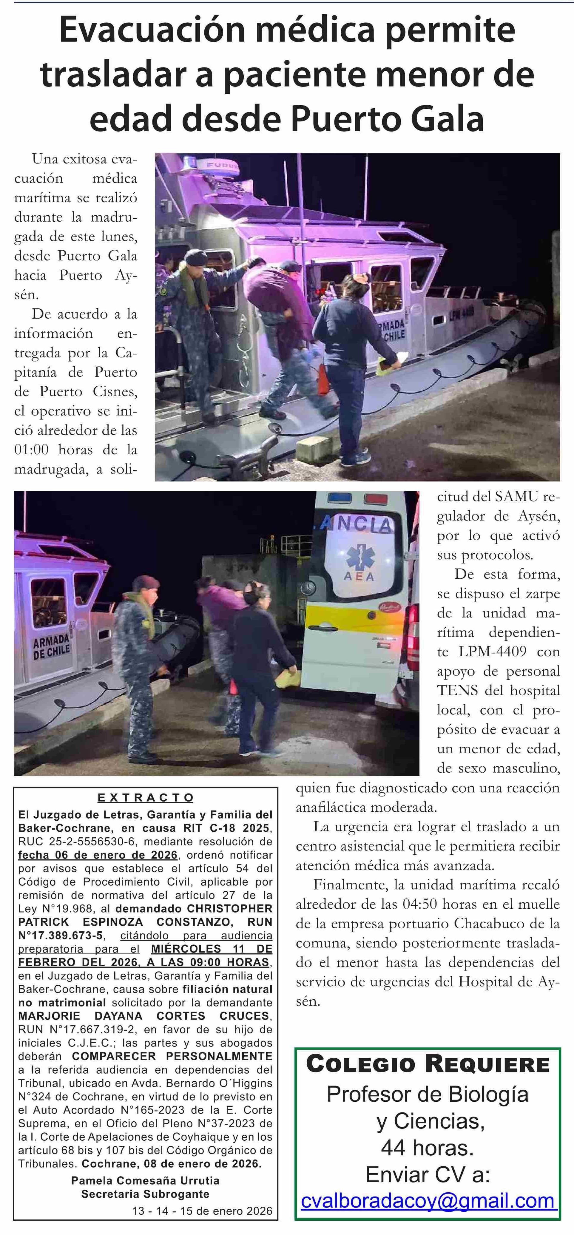 Evacuación médica permite trasladar a paciente menor de edad desde Puerto Gala