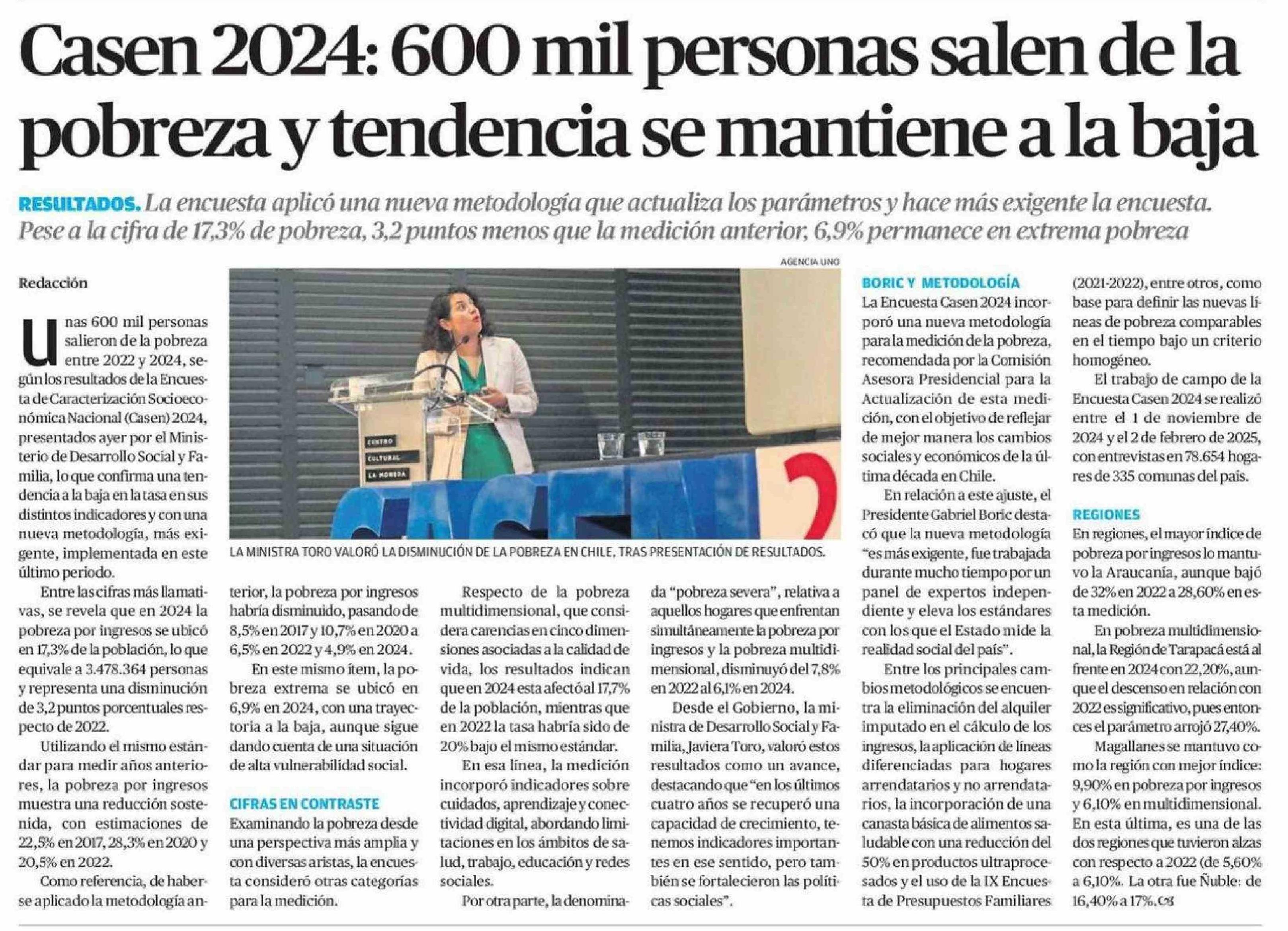 Casen 2024: 600 mil personas salen de la pobreza y tendencia se mantiene a la baja