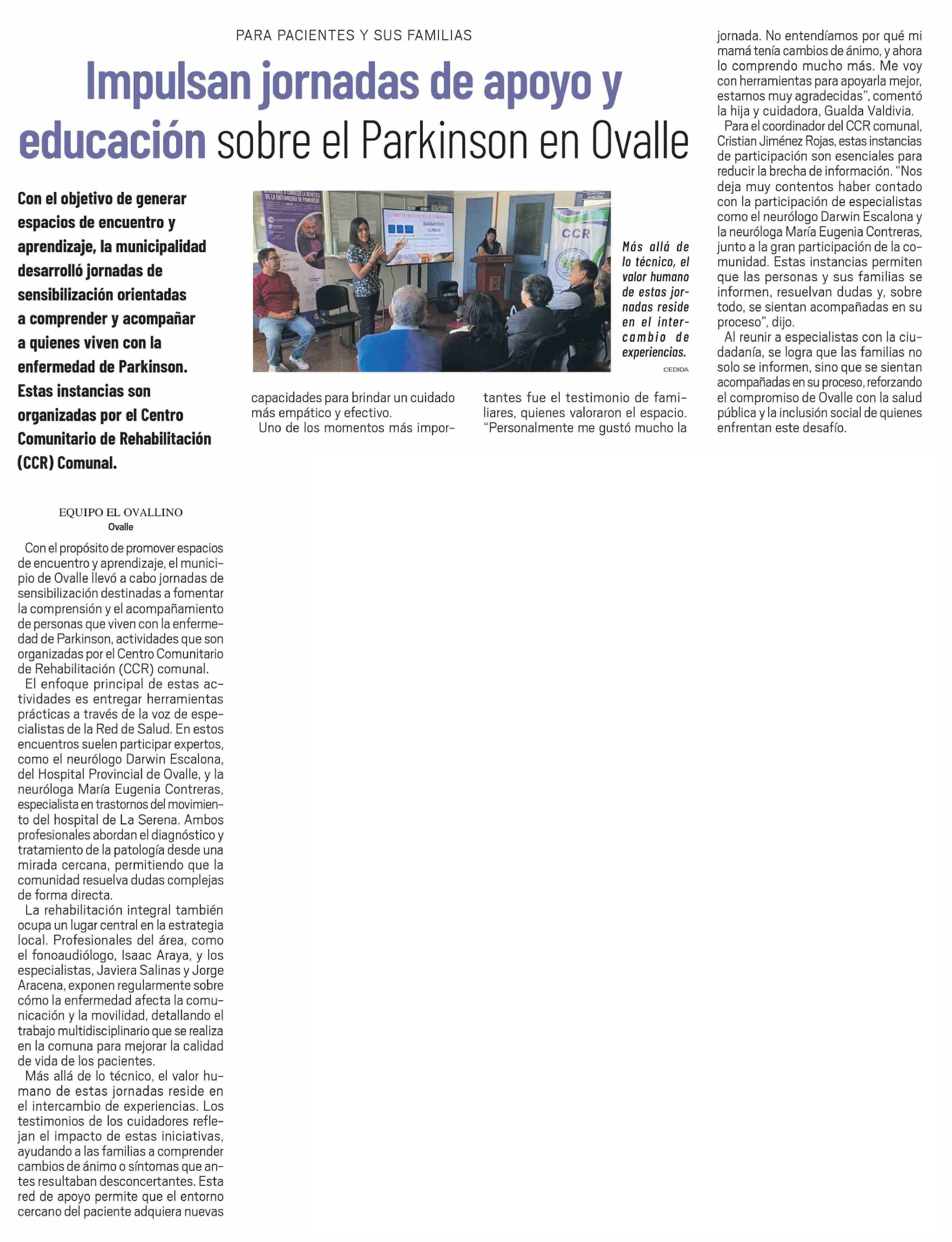 Impulsan jornadas de apoyo y educación sobre el Parkinson en Ovalle