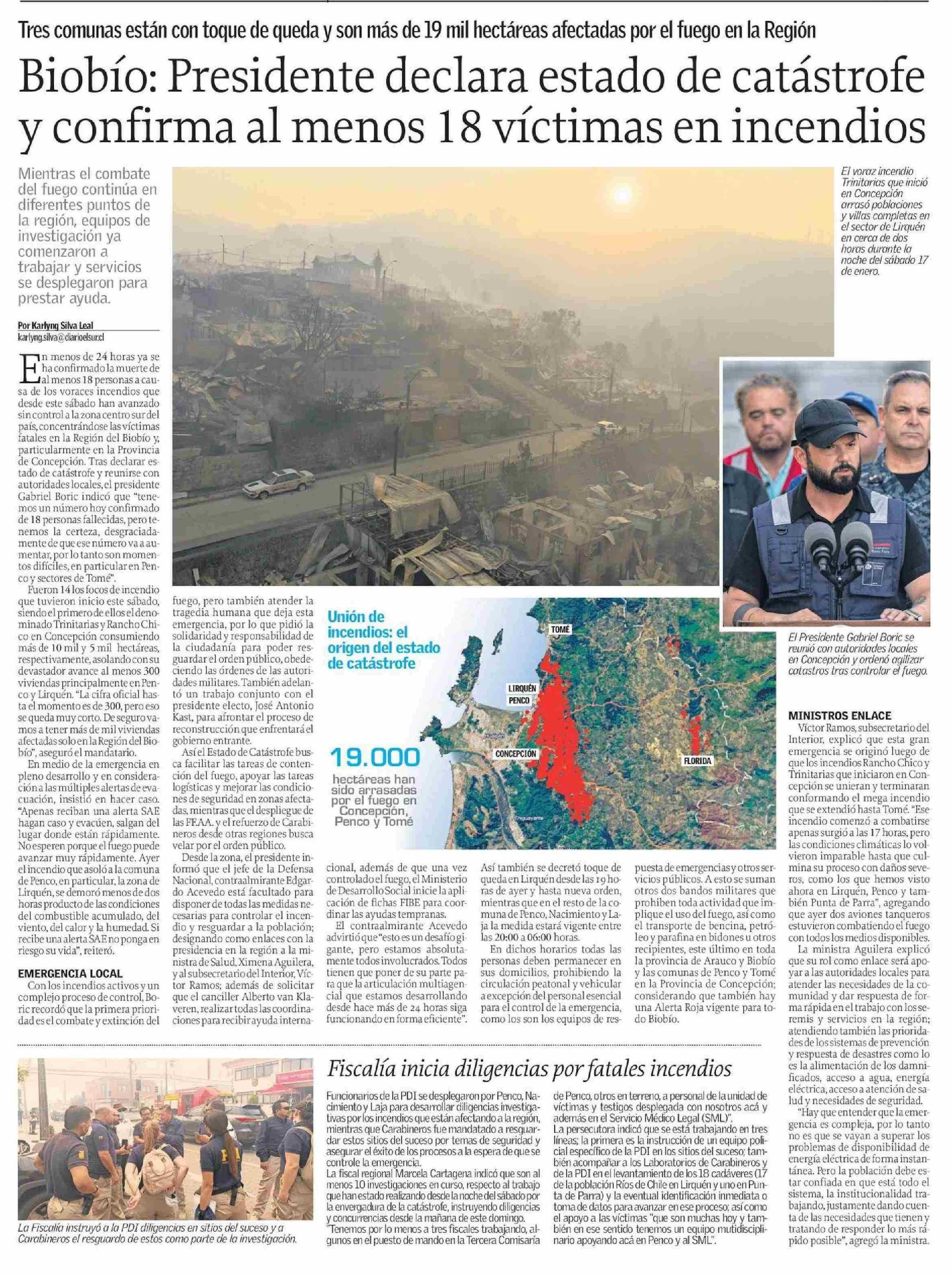 Biobío: Presidente declara estado de catástrofe y confirma al menos 18 víctimas en incendios