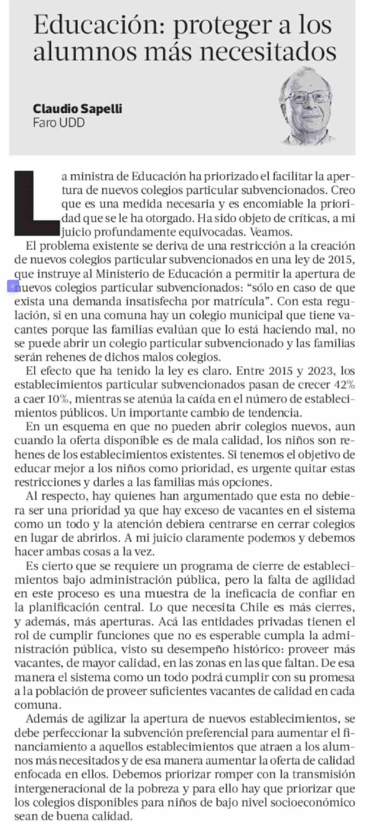 Columnas de Opinión: Educación: proteger a los alumnos más necesitados