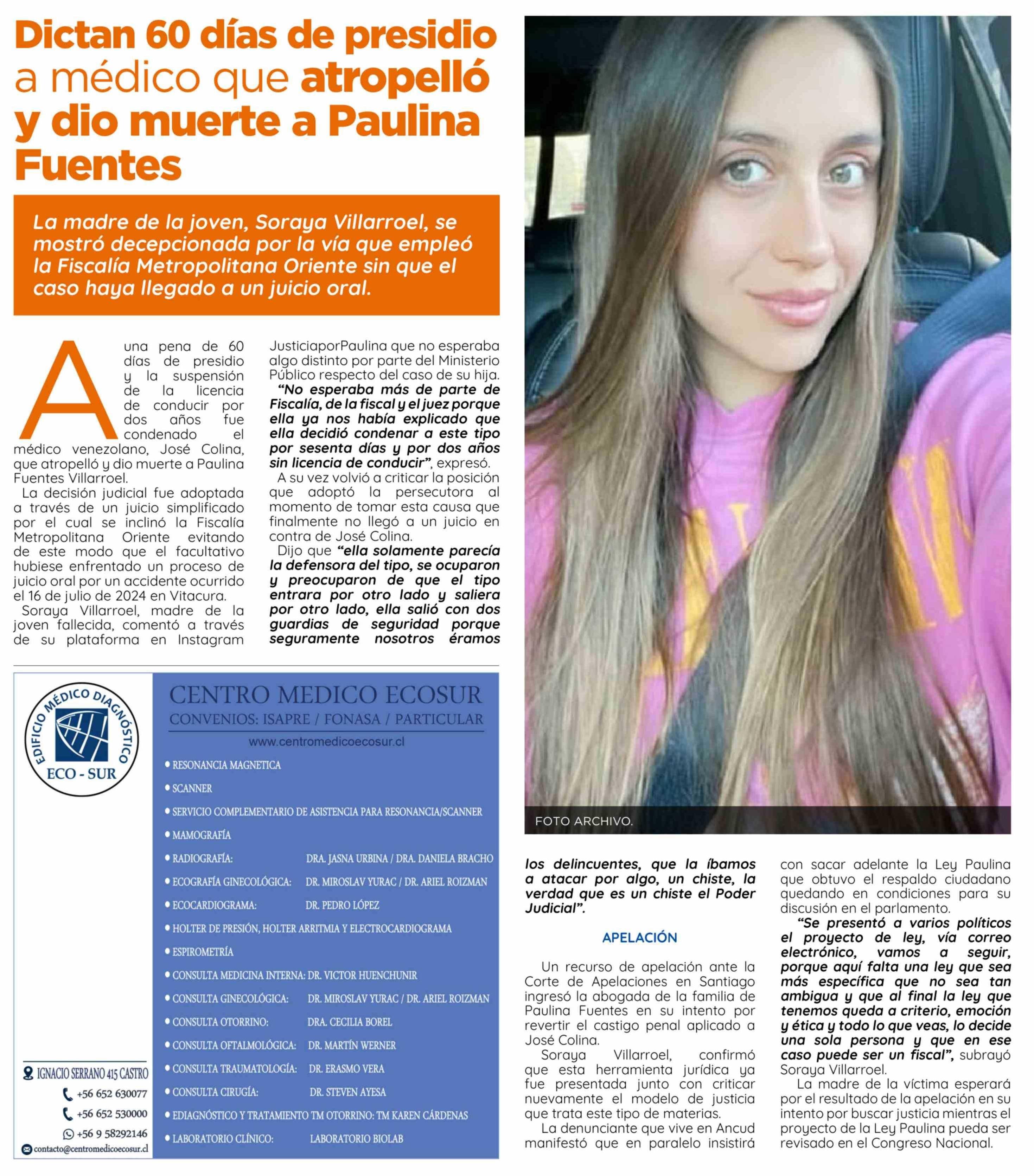 Dictan 60 días de presidio a médico que atropello y dio muerte a Paulina Fuentes
