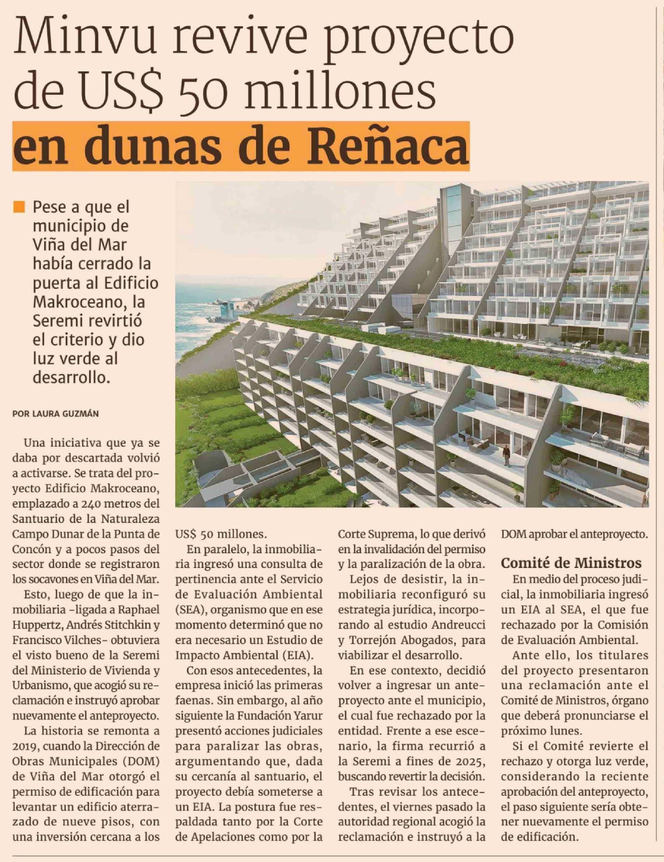 Minvu revive proyecto de US$ 50 millones en dunas de Reñaca