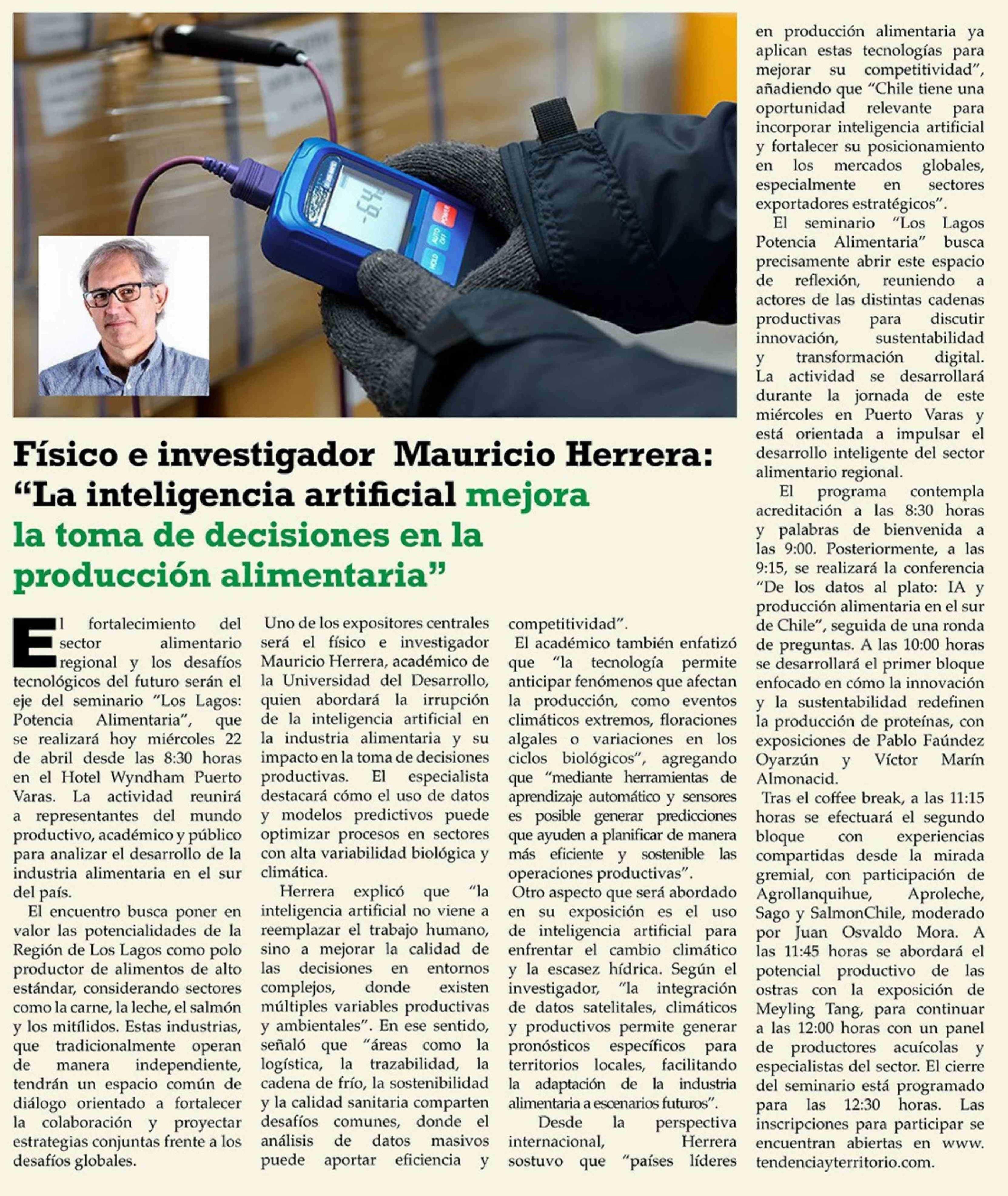 Título: Físico e investigador Mauricio Herrera: "La inteligencia artificial mejora la toma de decisiones en la producción alimentaria"
