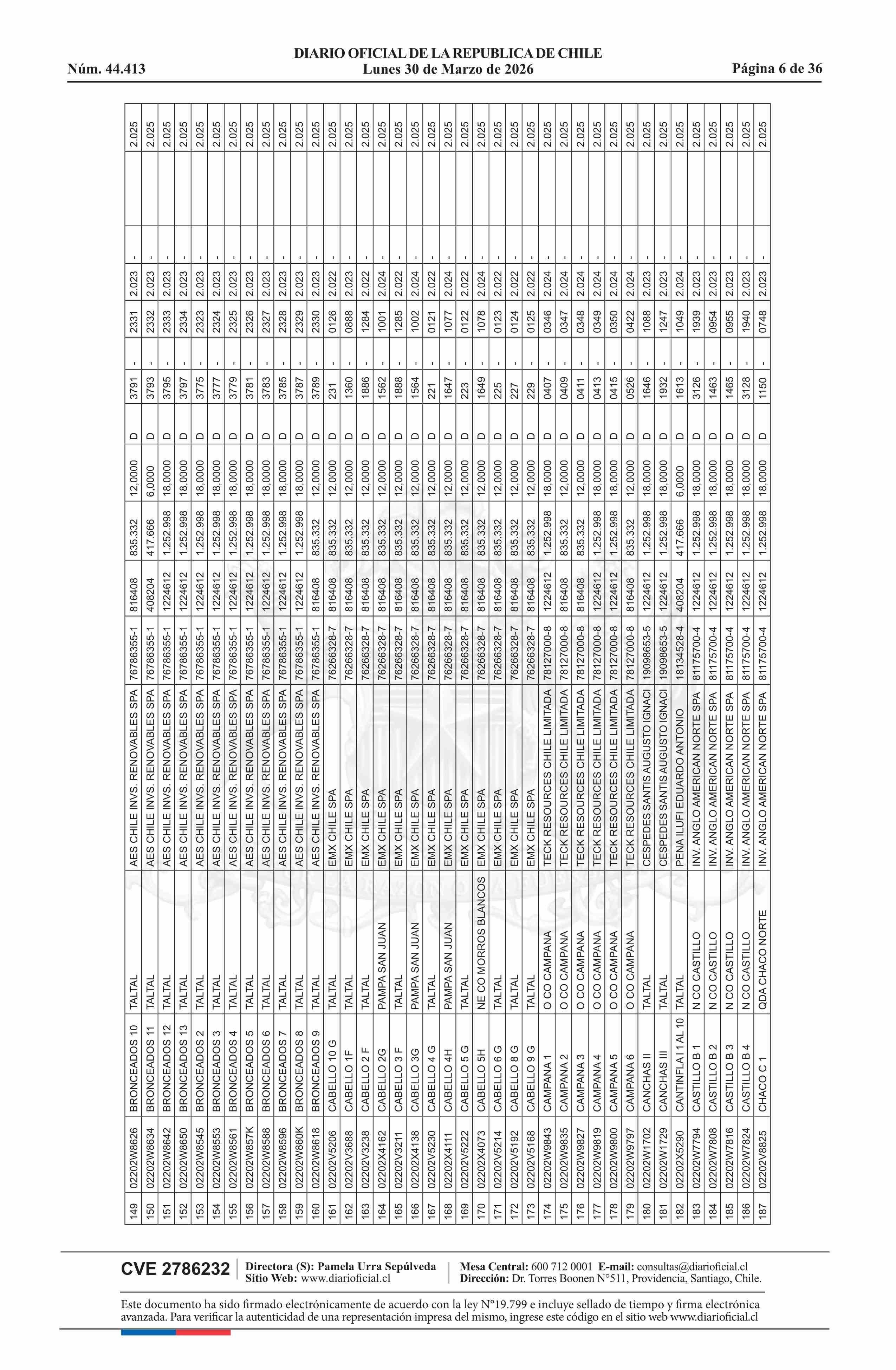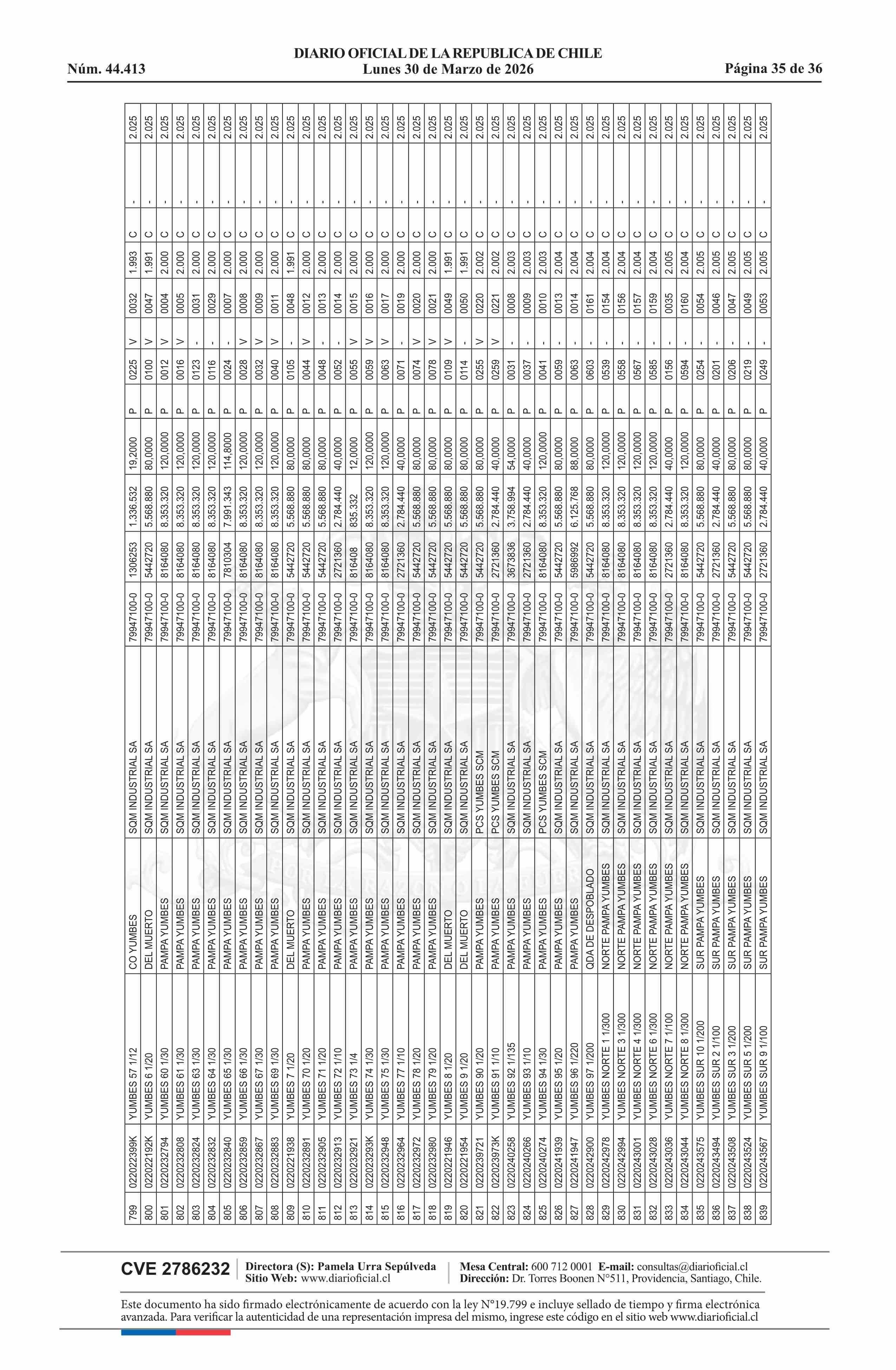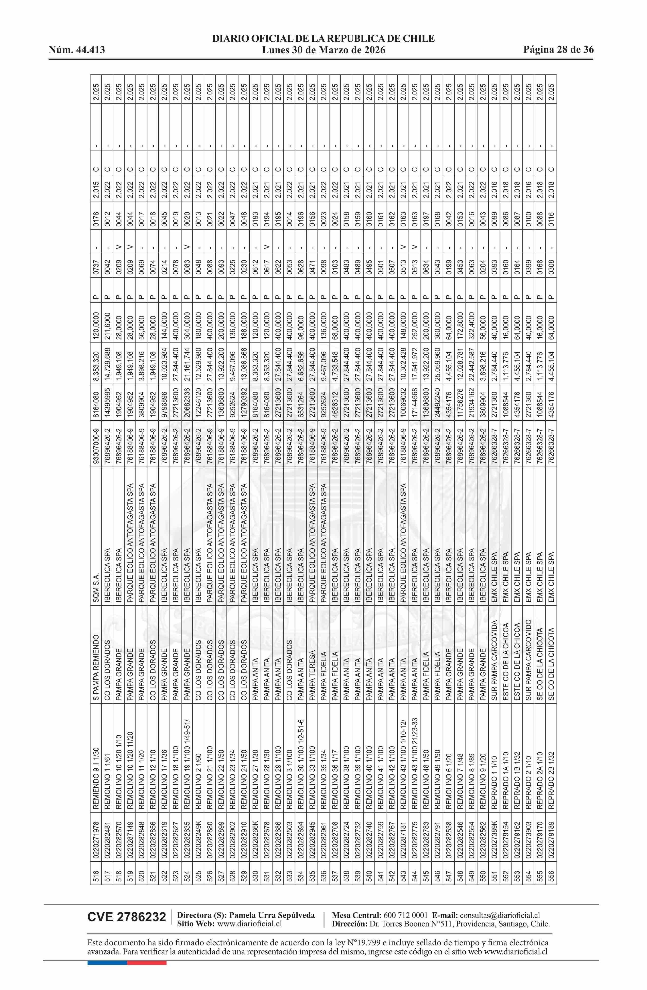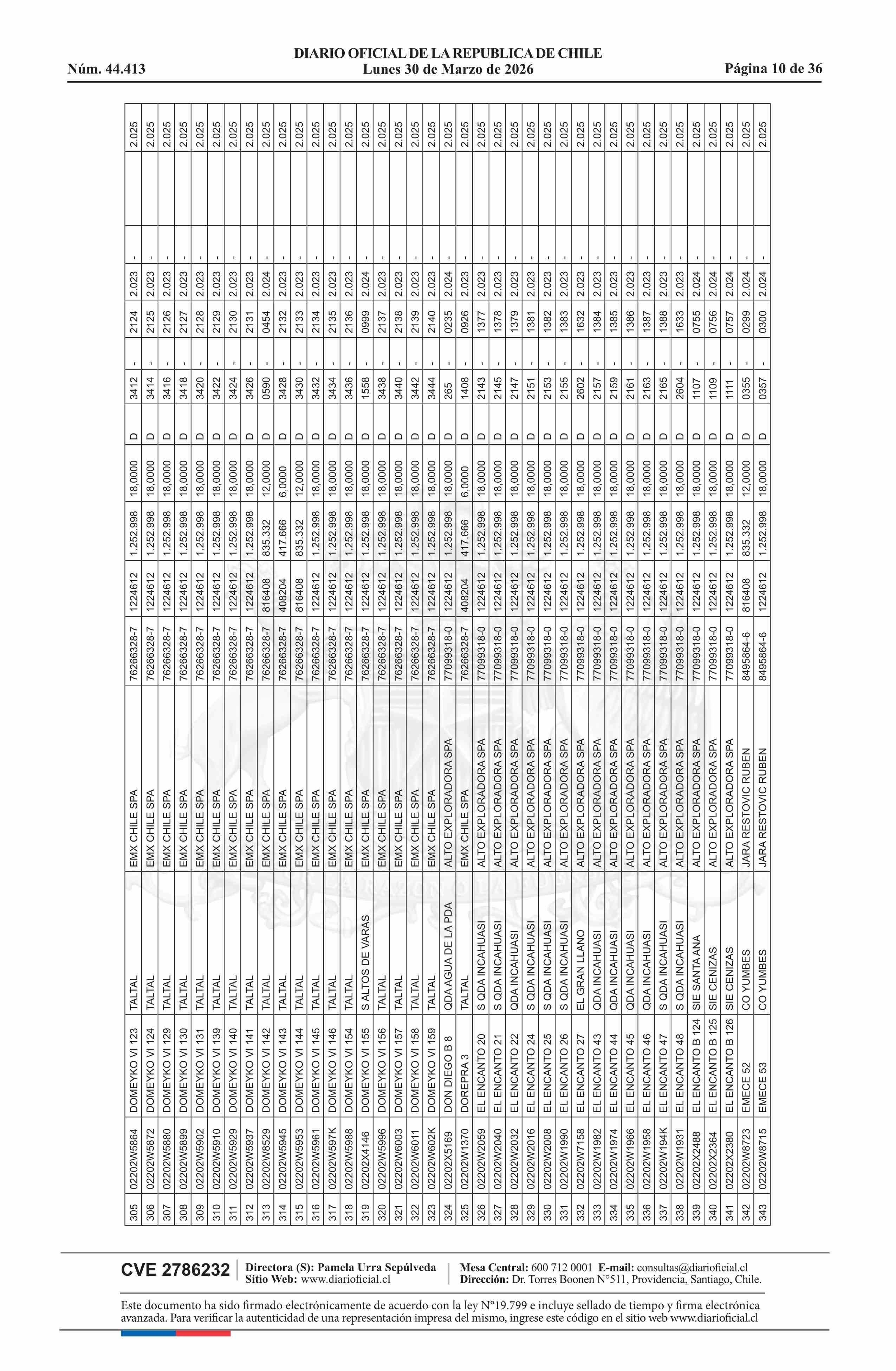 | Fuente: | DIARIO OFICIAL CHILE - BOLETÍN OFICIAL DE MINERÍA (DIARIO OFICIAL CHILE – BOM – NÓMINA REMATE) | Página(s): | 54-89 |