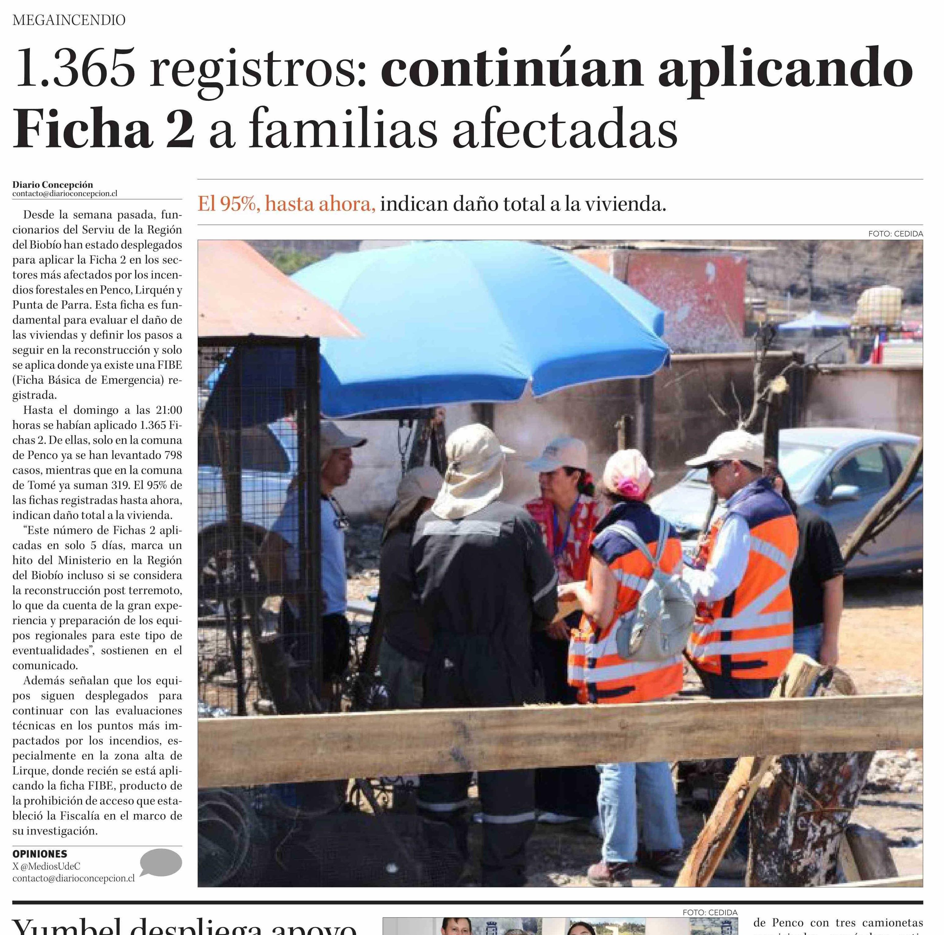 1.365 Registros: continúan aplicando Ficha 2 a familias afectadas